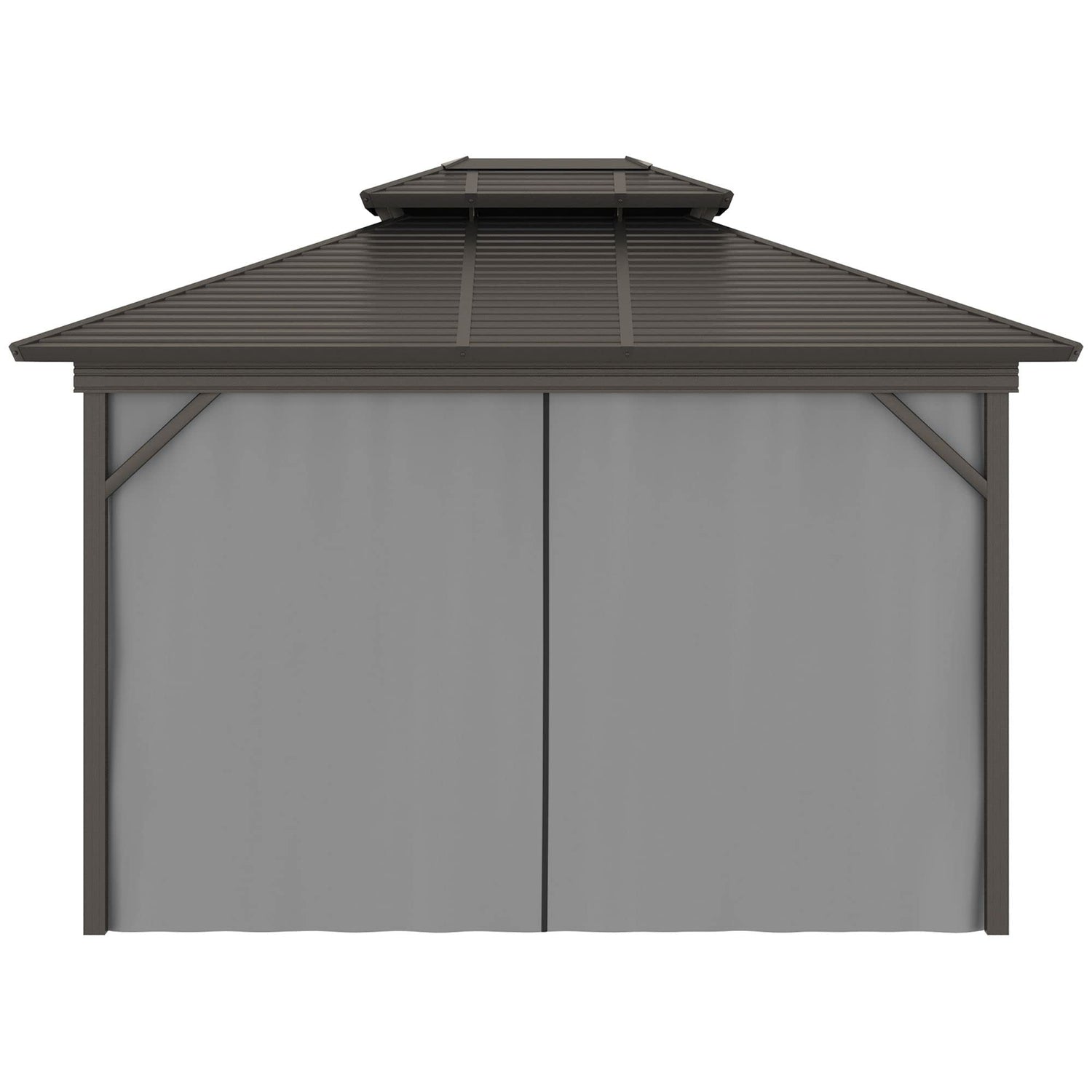 Outsunny 10' x 12' Hardtop Gazebo with Curtains and Netting, Permanent Pavilion Metal Double Roof Gazebo Canopy with Aluminum Frame and Hooks, for Garden, Patio, Backyard, Gray