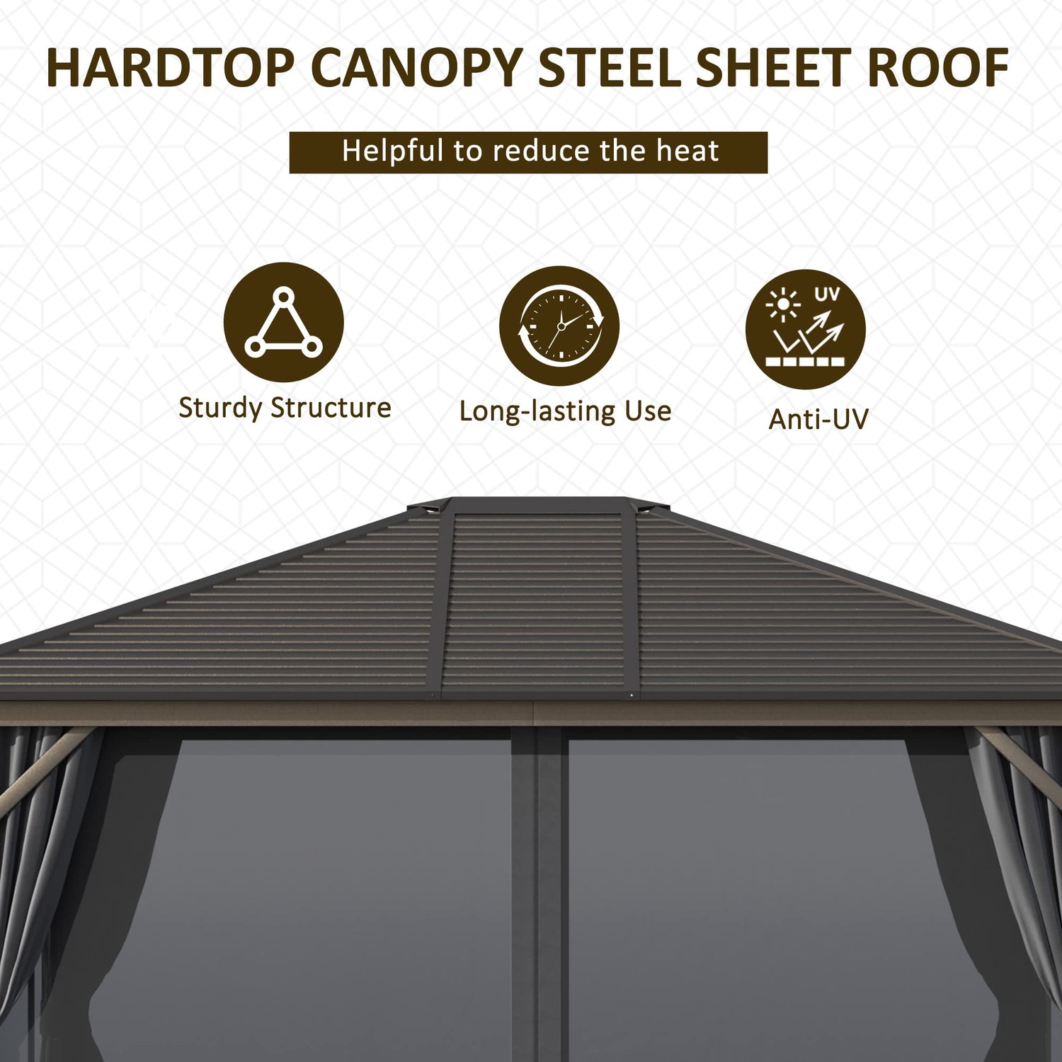 Outsunny 10' x 12' Hardtop Gazebo with Curtains and Netting, Permanent Pavilion Metal Single Roof Gazebo Canopy with Aluminum Frame and Hooks, for Garden, Patio, Backyard, Dark Gray