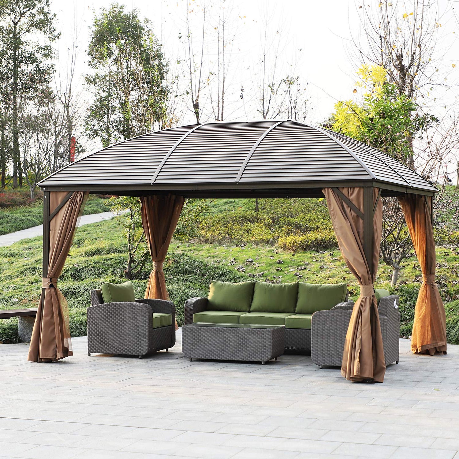 - A Gazebo That's Got You Covered: Our hard top gazebo's galvanized steel roof provides you and your patio furniture with needed shelter from UV. The curved dome roof with a gutter system helps make the rain fall faster, reducing water weight for an extra layer of safety.