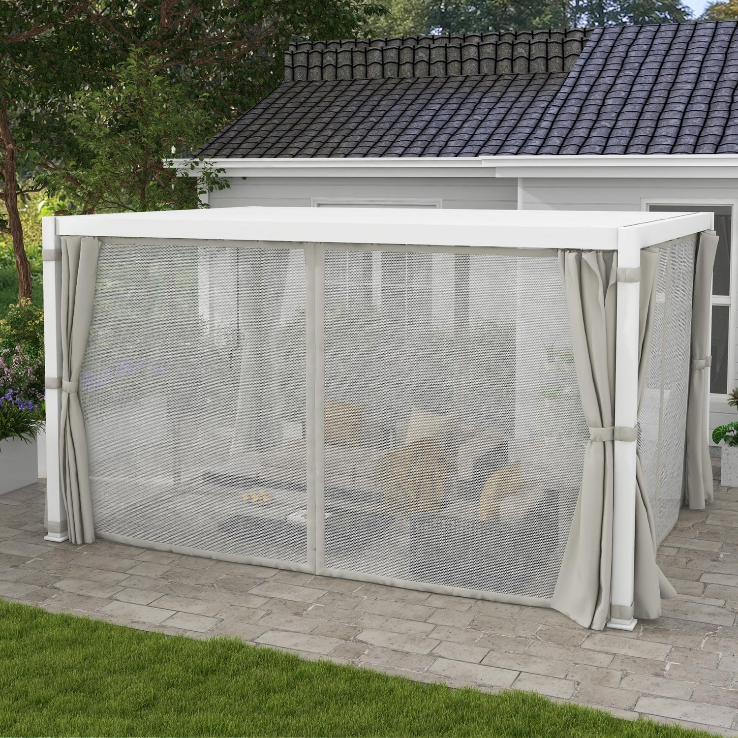 Outsunny 10' x 13' Louvered Pergola Hardtop Gazebo with Adjustable Aluminum Roof and Frame, Outdoor Pergola with Curtains and Netting, for Garden, Lawn, Backyard, and Deck, White