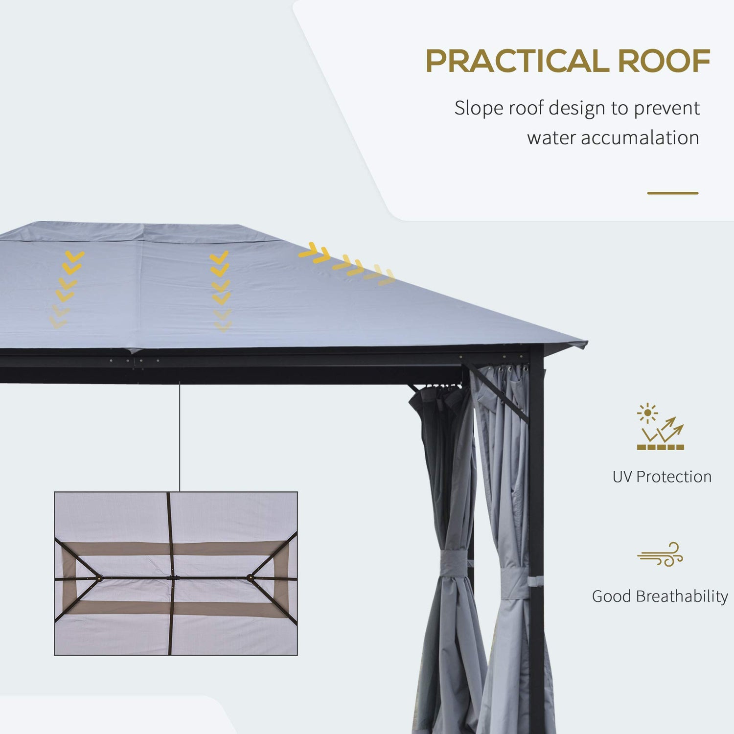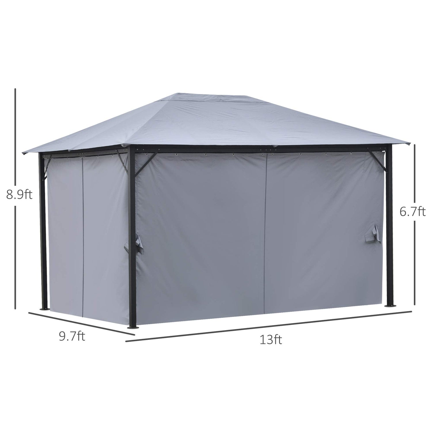 Outsunny 10' x 13' Patio Gazebo, Aluminum Frame, Outdoor Gazebo Canopy Shelter with Netting & Curtains, Garden, Lawn, Backyard and Deck, Gray