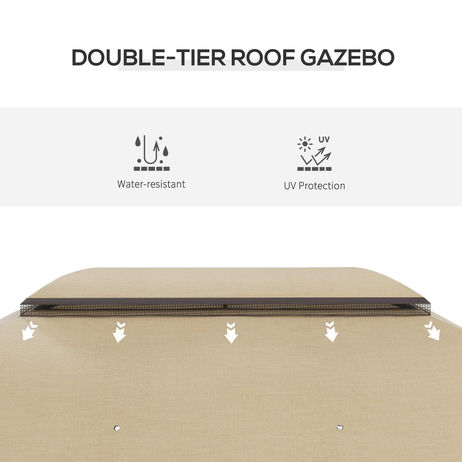 Outsunny 10' x 13' Patio Gazebo, Outdoor Gazebo Canopy Shelter with Netting, Vented Roof, Steel Frame for Garden, Lawn, Backyard, and Deck, Beige