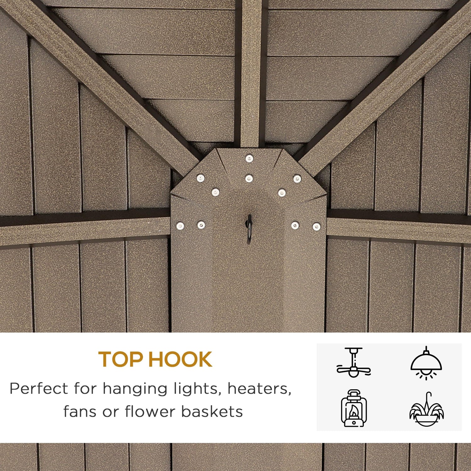 Outsunny 10' x 14' Hardtop Gazebo Canopy with Galvanized Steel Roof, Aluminum Outdoor Pavilion Gazebo with Top Hook, Netting, and Curtains for Patio, Garden, Backyard, Deck, Brown