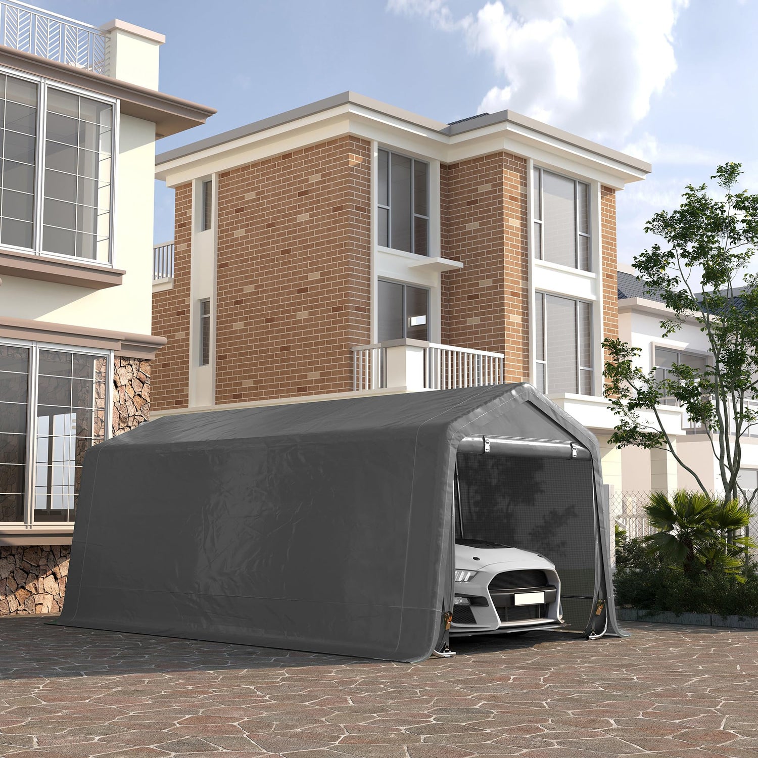 Outsunny 10' x 20' Carport Portable Garage, Heavy Duty Storage Tent, Patio Storage Shelter w/Anti-UV PE Cover and Double Zipper Doors, for Motorcycle Bike Garden Tools, Gray
