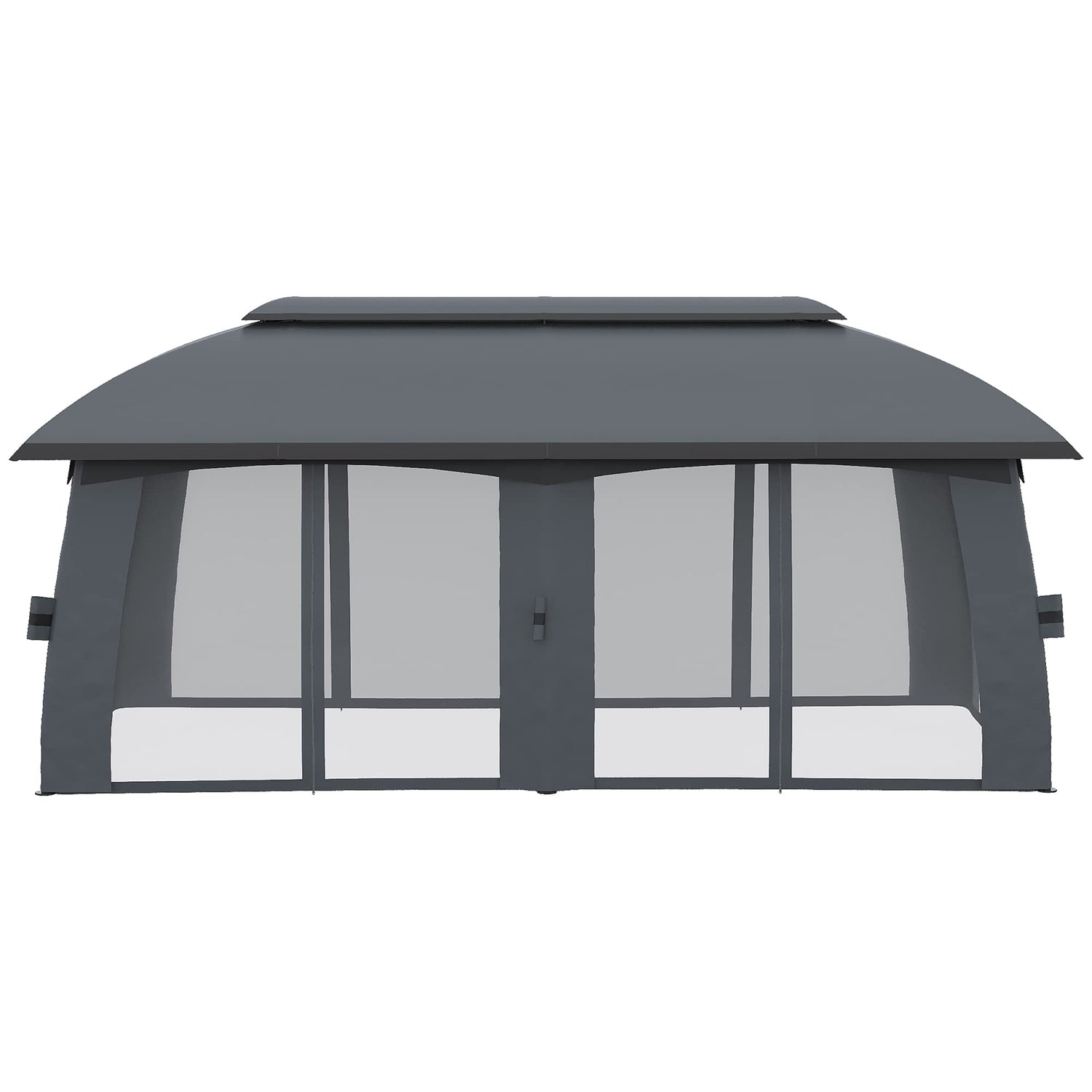 Outsunny 10' x 20' Patio Gazebo, Outdoor Gazebo Canopy Shelter with Netting, Vented Roof, Steel Frame for Garden, Lawn, Backyard, and Deck, Dark Gray