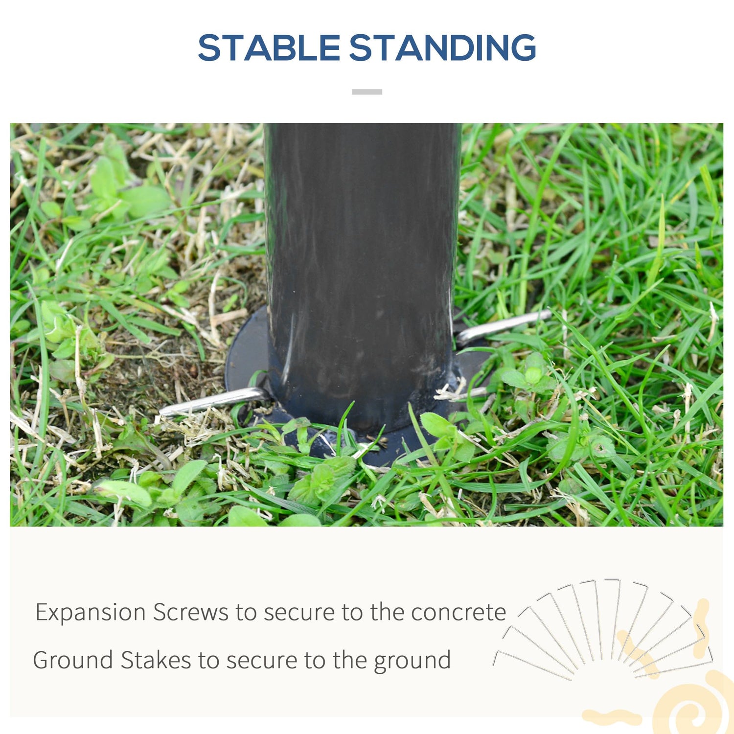 - Outdoor Ready Steel: We selected a powder-coated steel frame for its ability to withstand water and warping. Please make sure to insert the stakes or expansion screws through the feet of your deck gazebo to mount it to soft or hard ground.