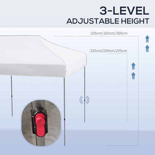 Outsunny 10' x 20' Pop Up Canopy Tent, Instant Sun Shelter with 3-Level Adjustable Height, Easy up Outdoor Tent for Parties with Wheeled Carry Bag for Garden, Patio, White