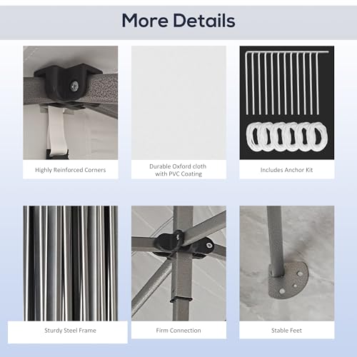 - Outdoor Ready: By making use of the stakes and ropes, you can mount our portable canopy to all sorts of soft outdoor surfaces. The powder-coated steel frame offers a level of protection against water and 12 drainage holes on the top to effectively prevent water accumulation.