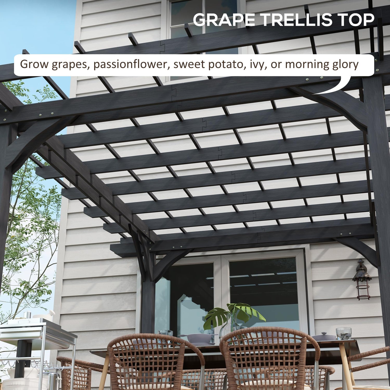 - DIY Pergola Kit: You don't have to own a vineyard to bring rustic, old-world charm to your backyard. You can grow grapes, set up sweet potatoes, plant passionflower, ivy, or mesmerizing morning glory—any vine is prime when working with our outdoor pergola.