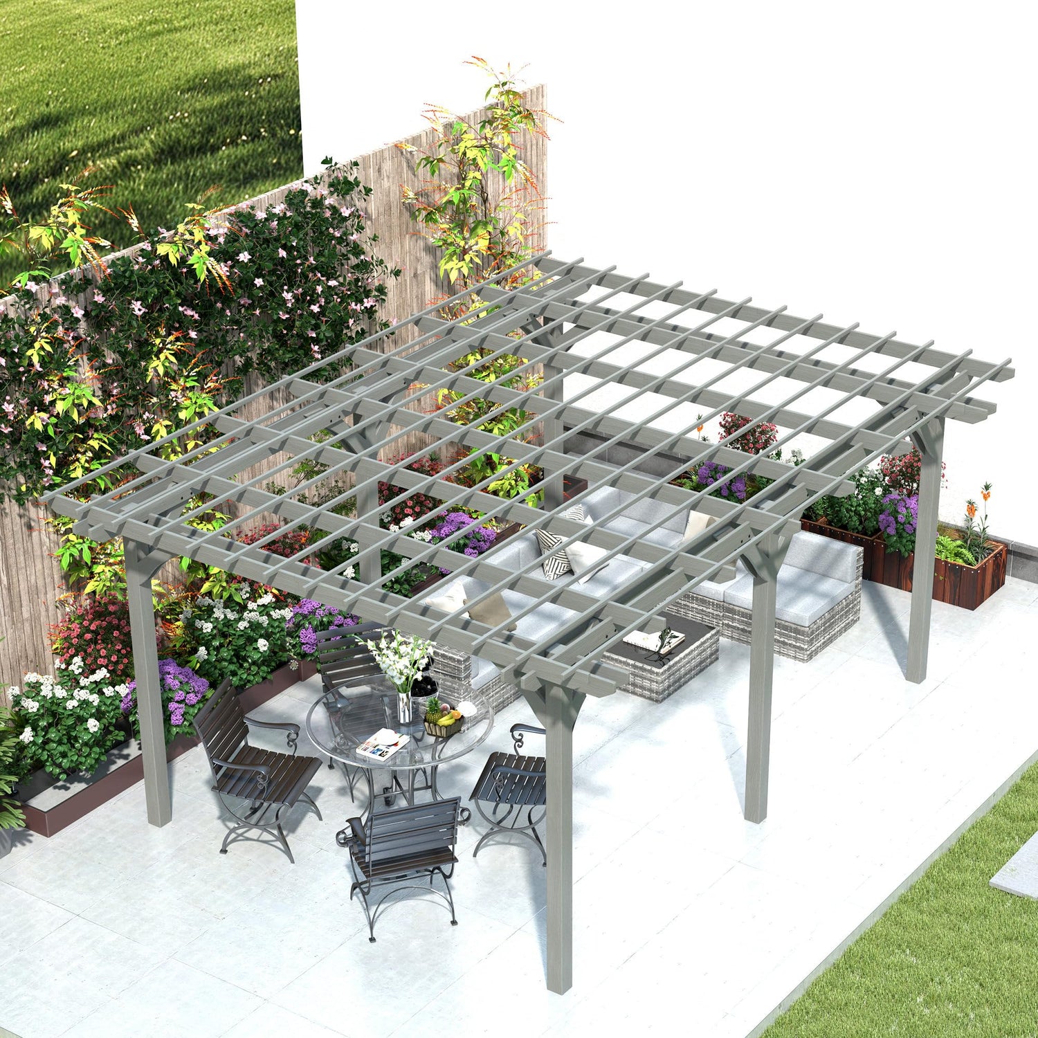 Outsunny 12' x 16' Outdoor Pergola, Wood Gazebo Grape Trellis with Stable Structure for Climbing Plant Support, Garden, Patio, Backyard, Deck, Gray