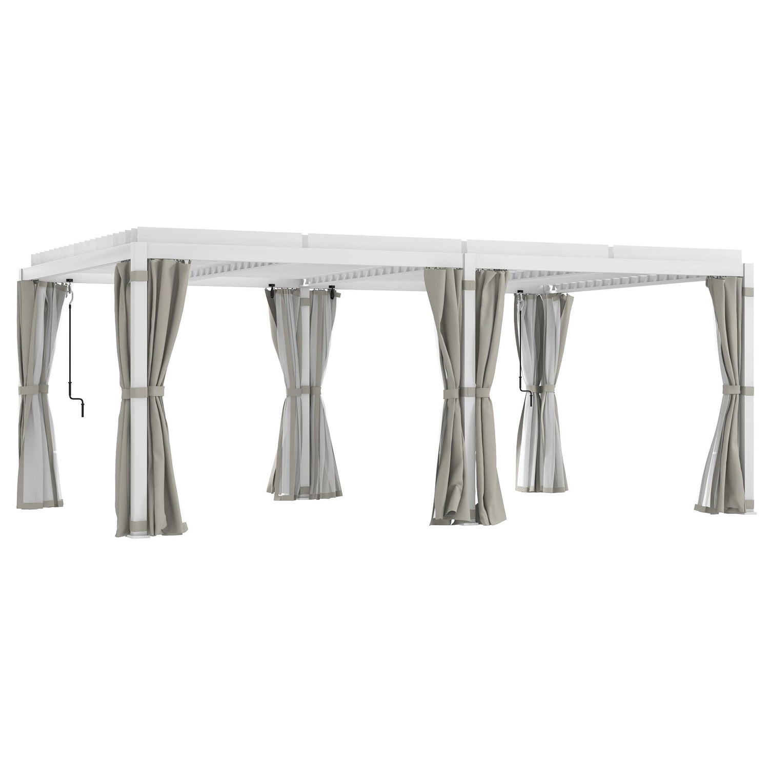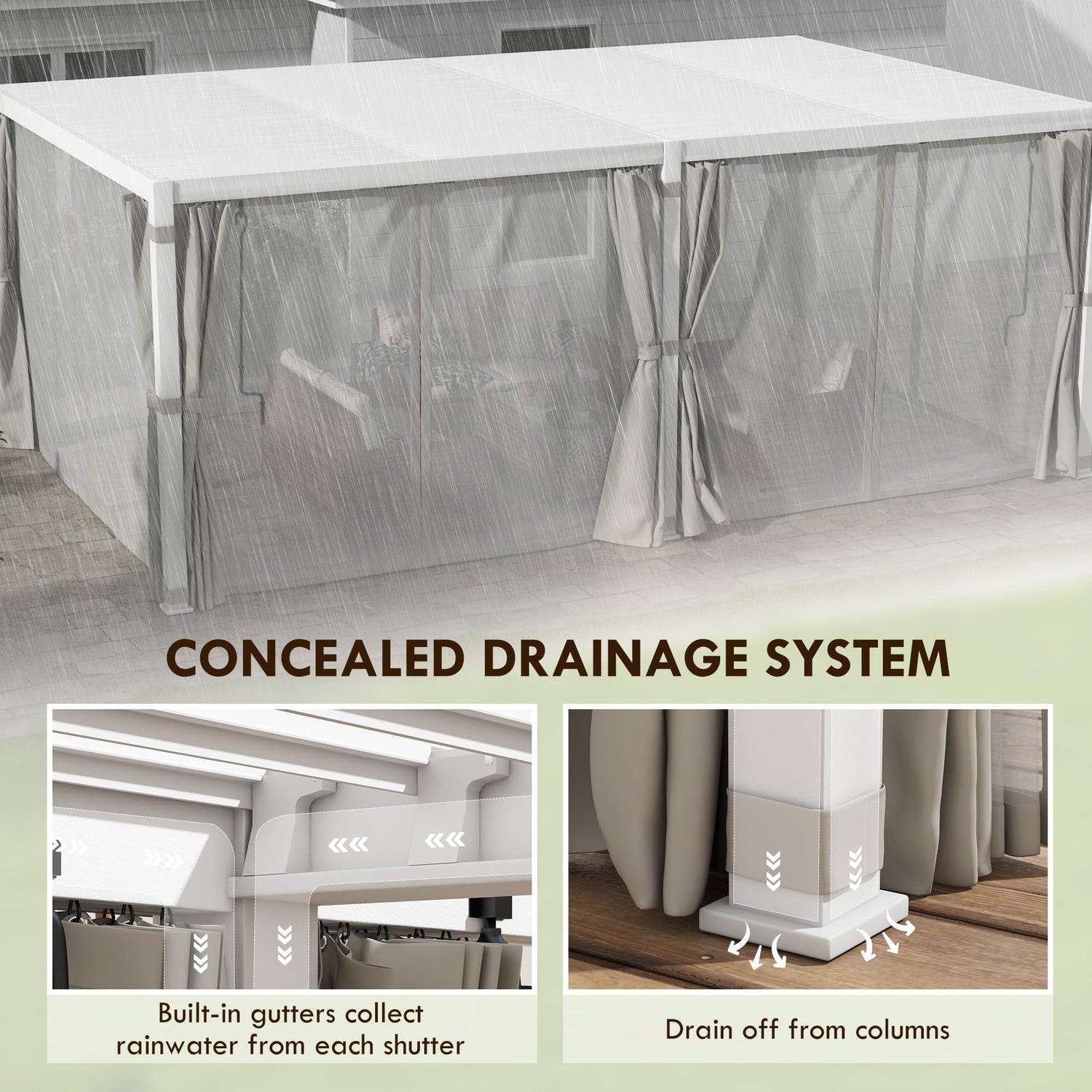 Outsunny 12' x 19' Louvered Pergola Hardtop Gazebo with Adjustable Aluminum Roof and Frame, Outdoor Pergola with Curtains and Netting, for Garden, Lawn, Backyard, and Deck, White