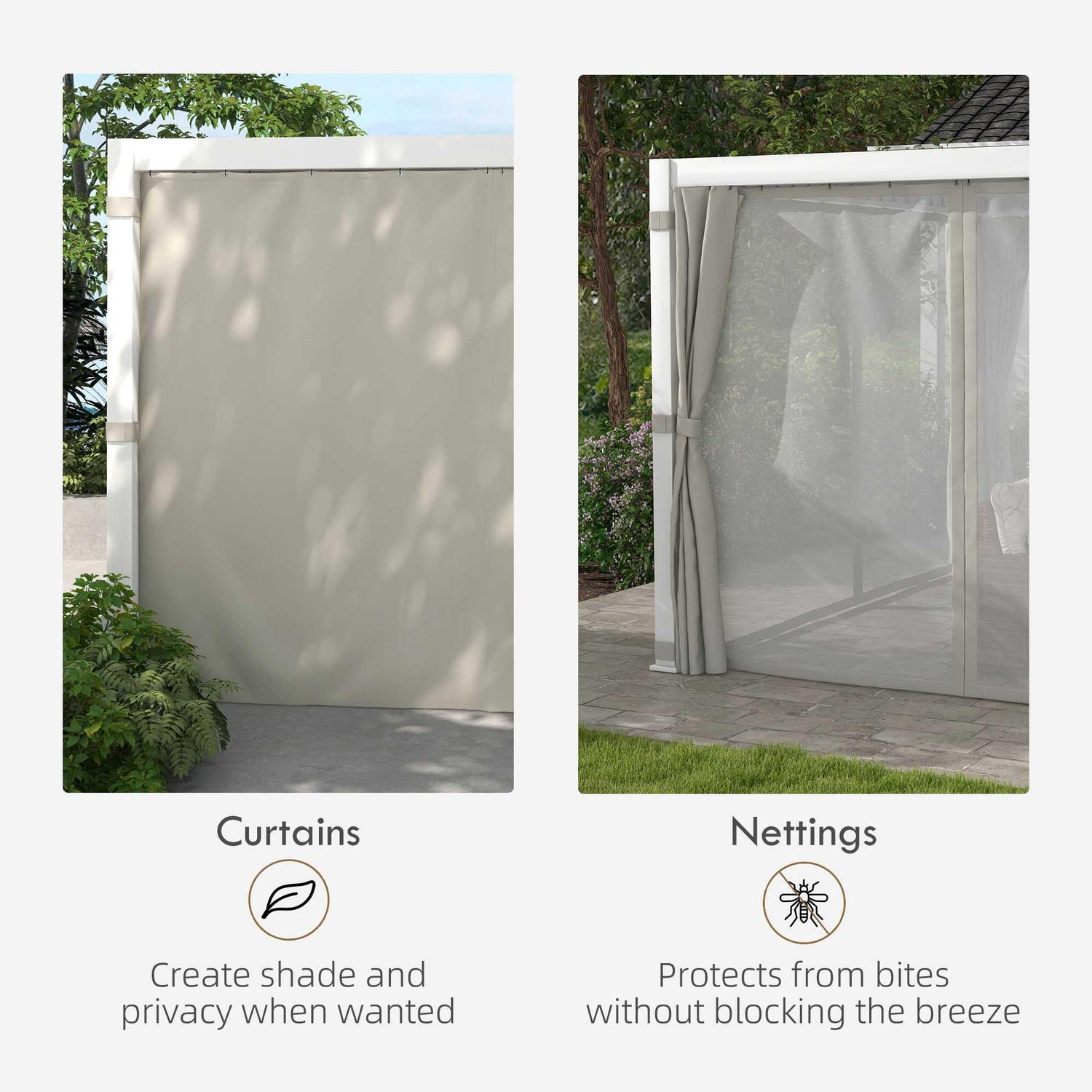 Outsunny has a patio pergola to let you enjoy sun or shade. Get rid of glare, sunbathe, or star gaze in the open air. This metal pergola includes a louvered roof that opens or shuts at the twist of the handle. It comes with two sets of side walls: mesh so you can keep out unwanted winged things while letting in the breeze, and curtains to block the wind and create privacy with ease. With stakes and screws for soft or hard ground, it mounts to the porch or garden. Get out, get comfy, Outsunny.