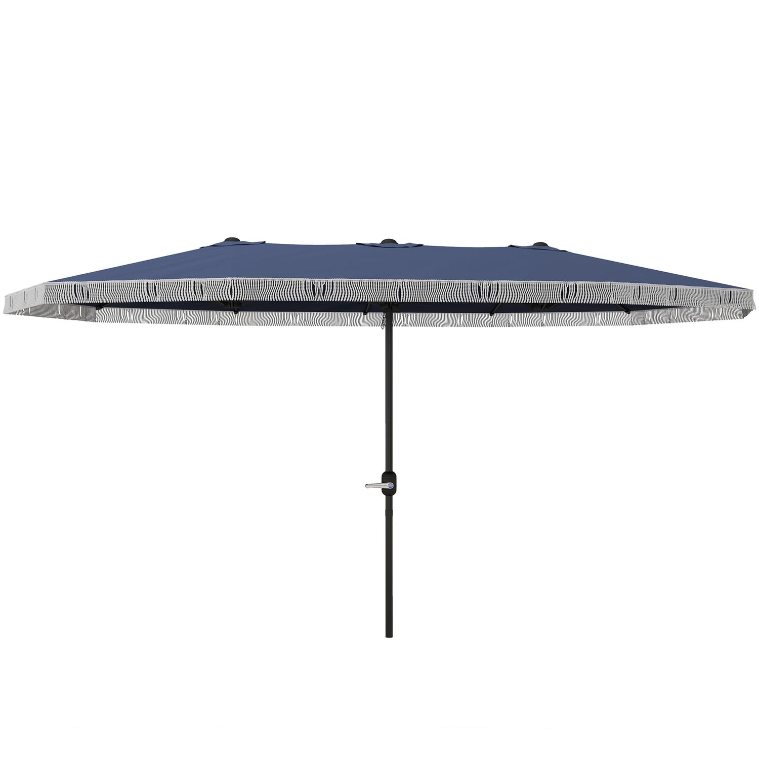 Outsunny 15ft Extra Large Patio Umbrella with Fringe, UPF30+ Double-sided Market Umbrella with Easy Crank Handle, 2 Vents for Garden Pool Lawn, Dark Blue