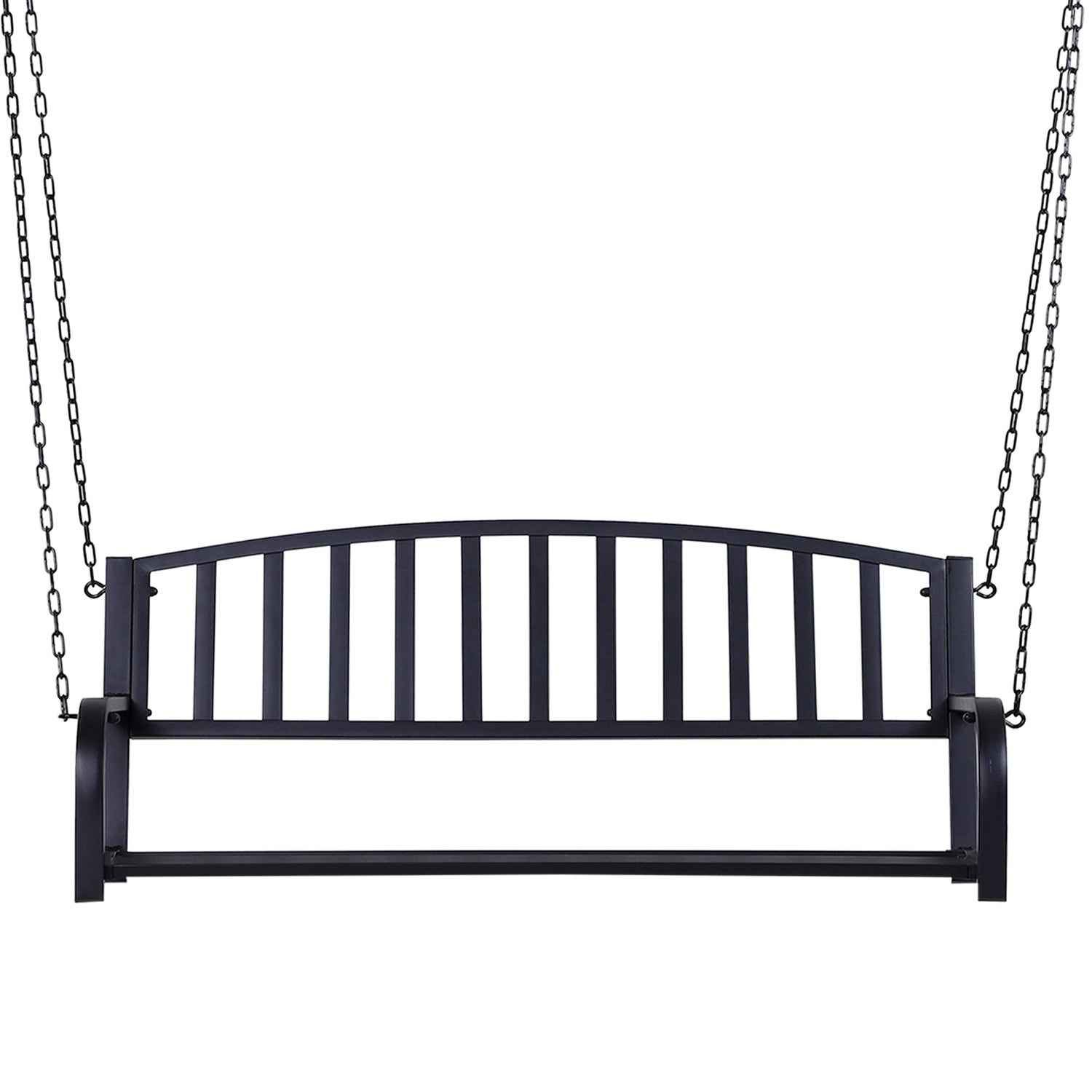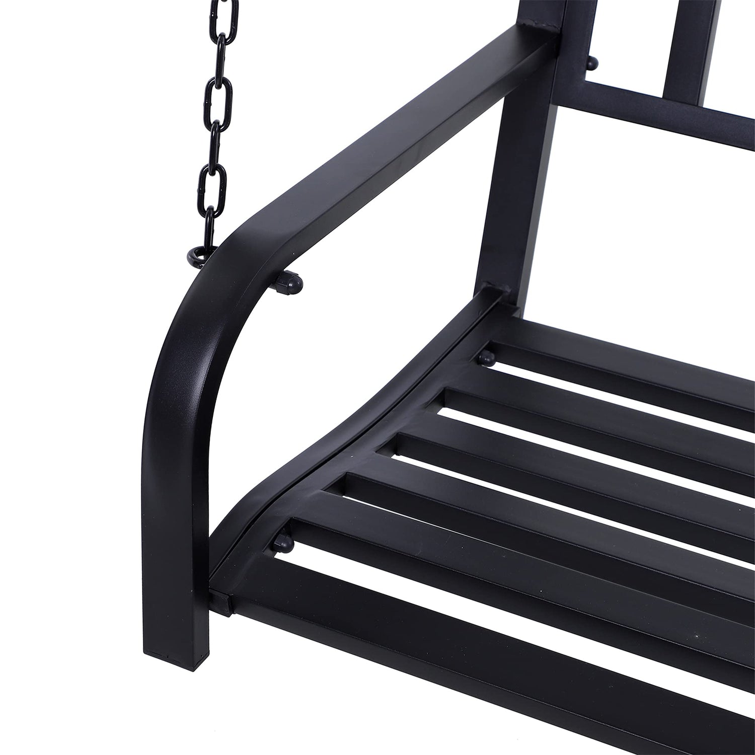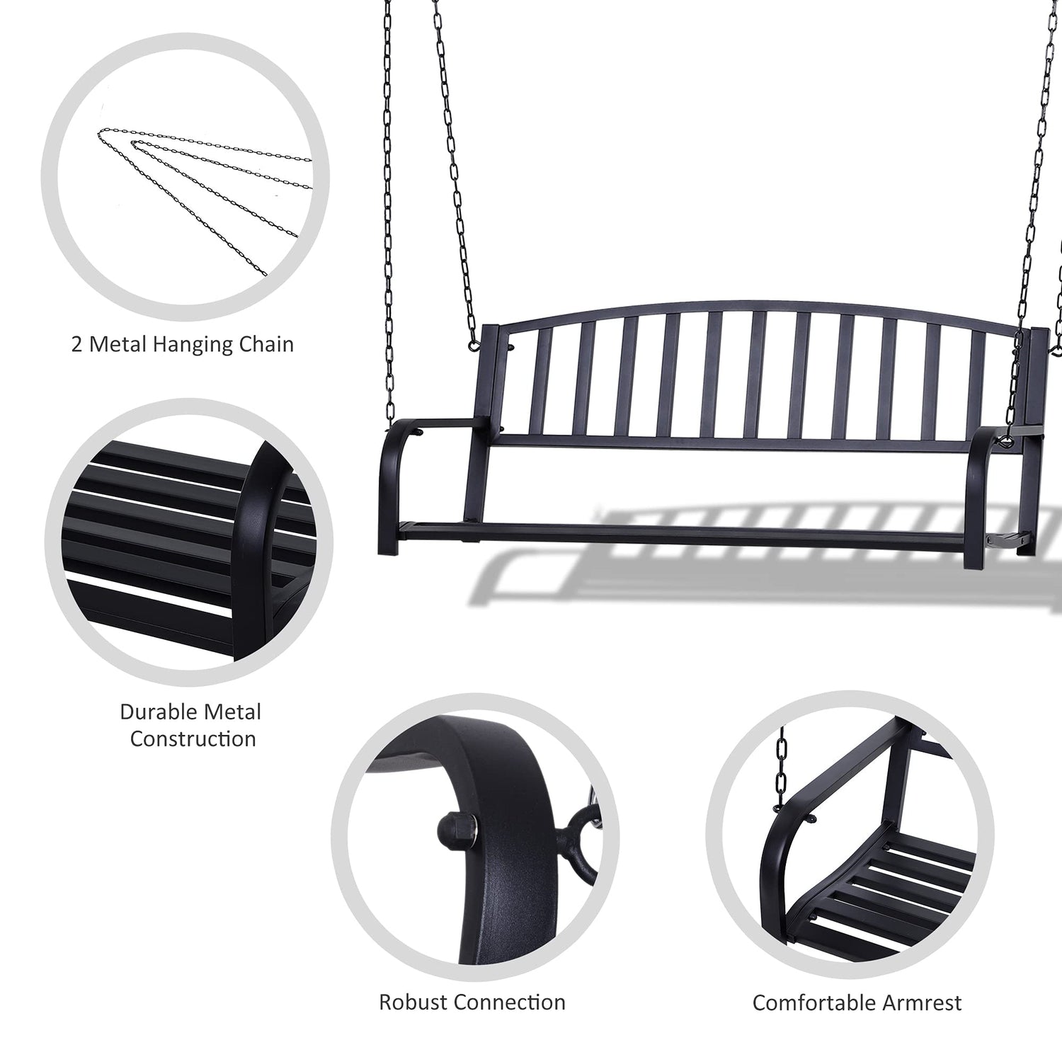 Outsunny 2 Person Front Porch Swing Patio Swing Bench, Outdoor Steel Swing Chair with Sturdy Chains, for Backyard, Deck, 528 lb Weight Capacity, Black