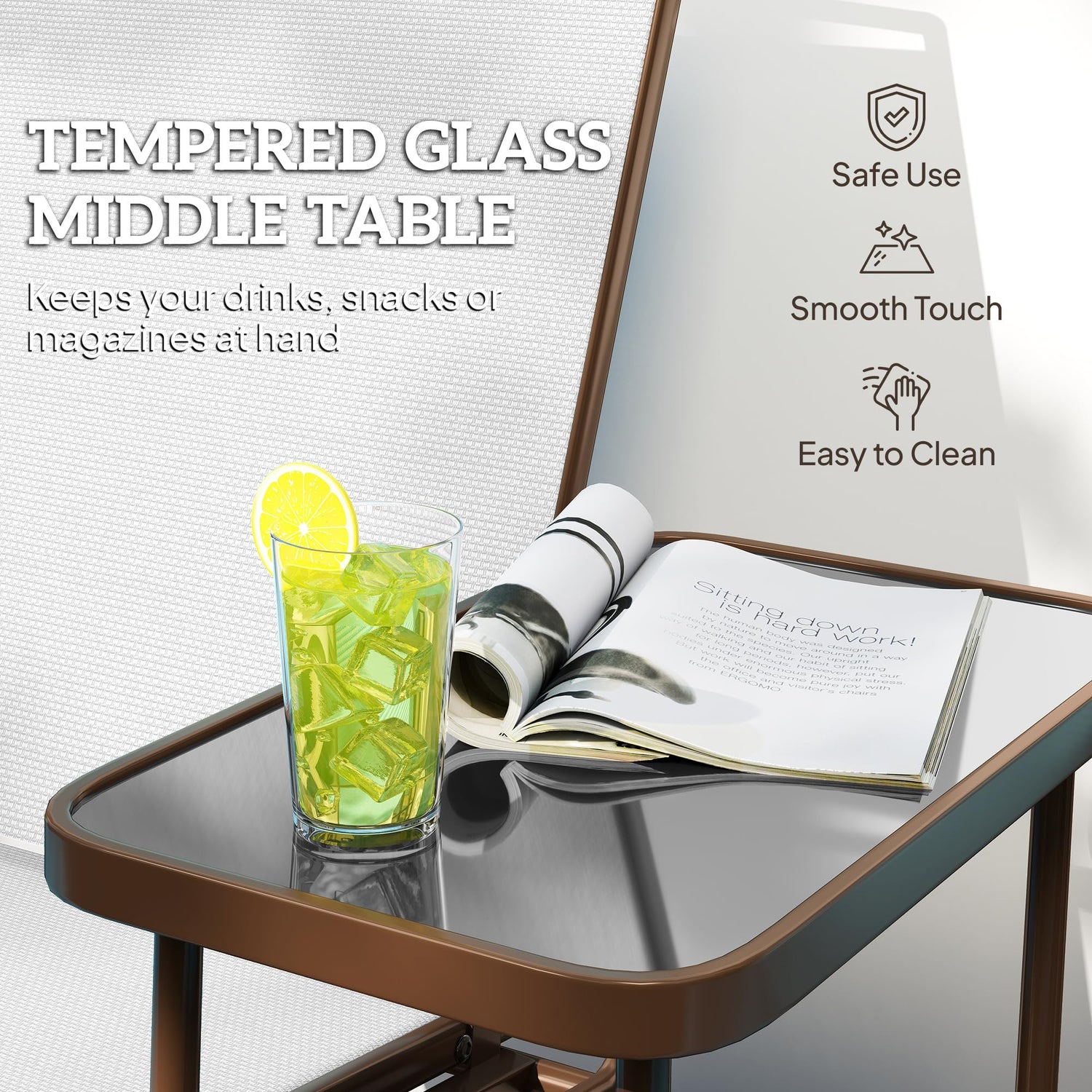- Double Glider: This patio loveseat is an outdoor glider with a table in between the seats. Sway through the breeze with a friend at angles between 90 and 168°.