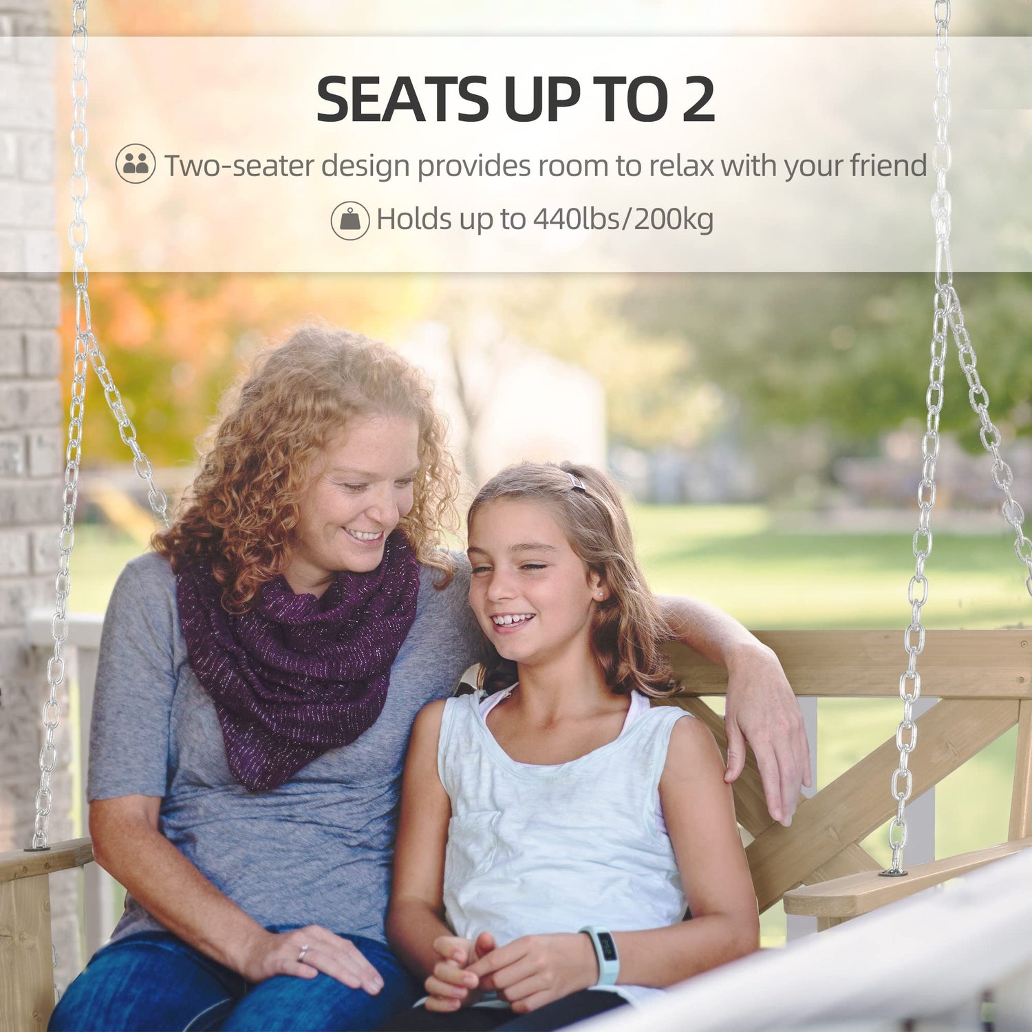 Outsunny 2 Person Porch Swing, Patio Swing, Outdoor Swing Bench with Pine Wood Frame and Hanging Chains for Garden and Yard, 550 lbs Weight Capacity, X Shaped Design, Natural