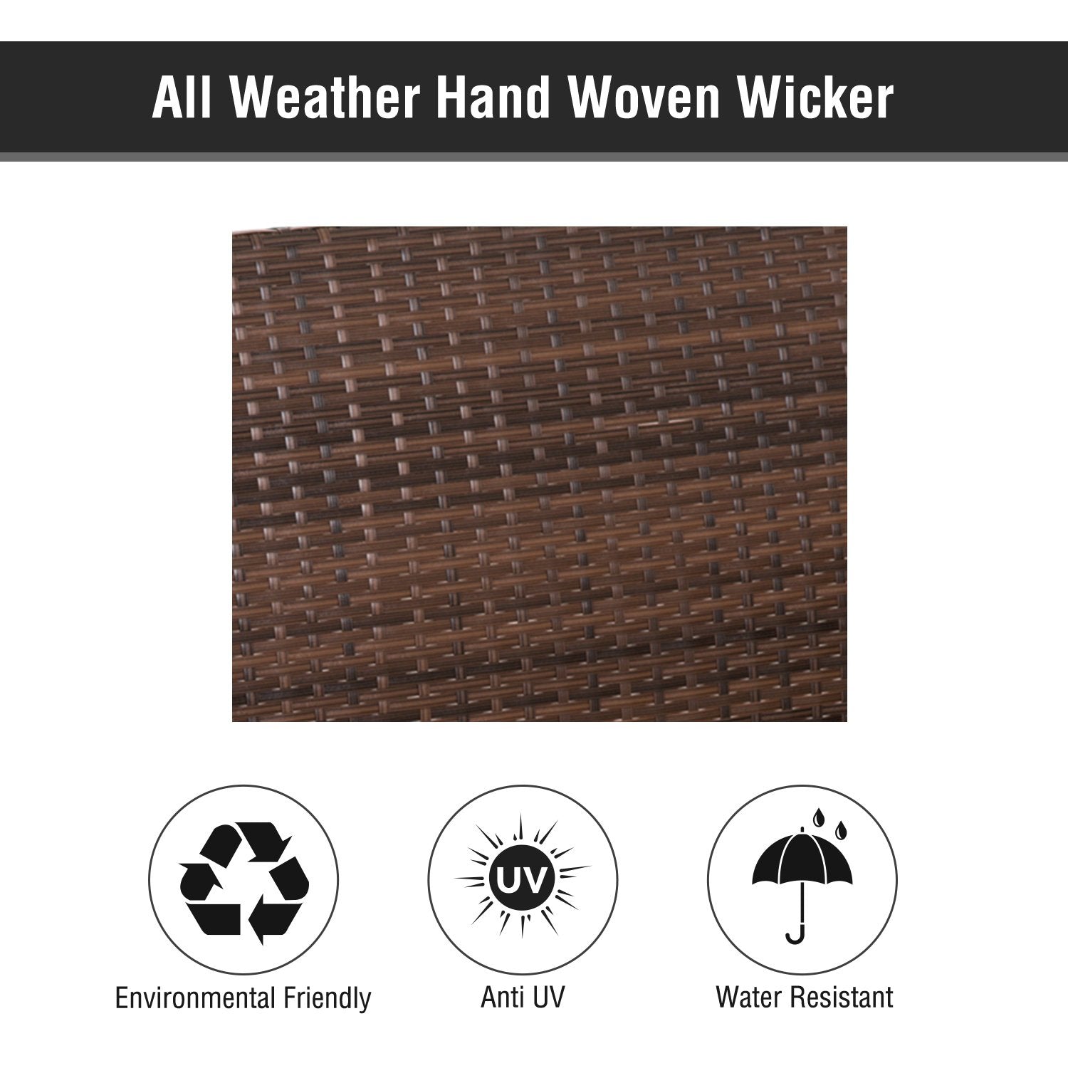 - Weather-resistant wicker material and elegant dark coffee finish adds an elegant touch to your patio