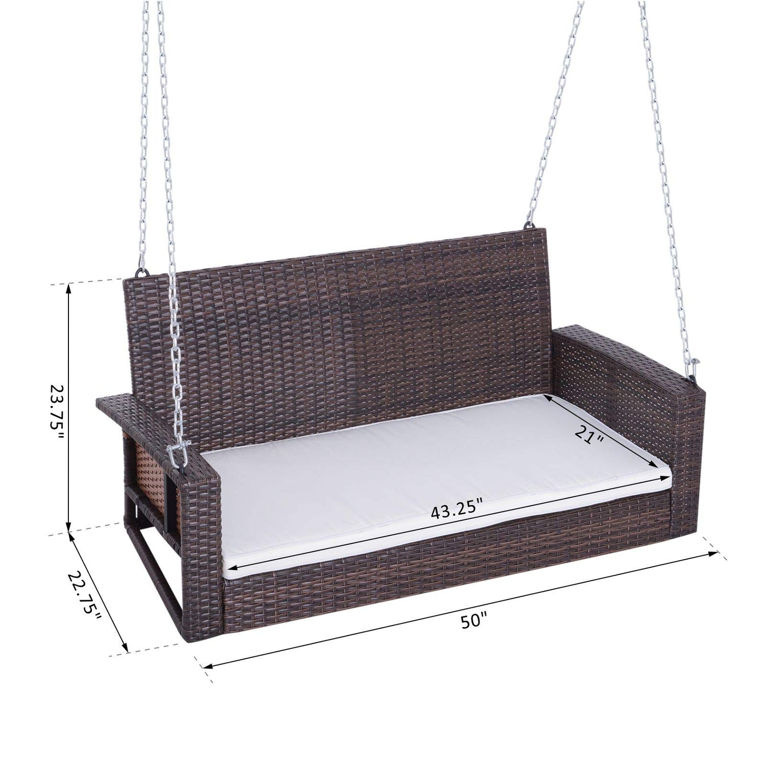 Details: Enjoy the beautiful weather with your friends and family by relaxing on our Outsunny 2 Person Outdoor Wicker Porch Swing Bench. Have a seat and let the soothing rocking sway you gently back and forth. The seats are curved for an incredibly comfortable sitting angle complete with armrests for support that do the same. Extra heavily padded seat is included to complete your sitting experience.So sit back, relax and let the summer breeze take you away.