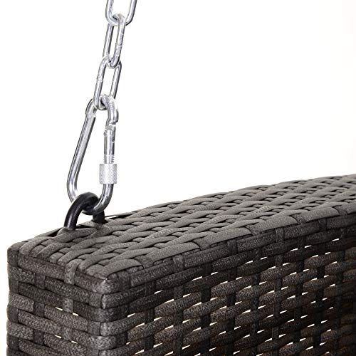 - Handwoven Wicker Style: A wonderful accent piece, our swinging PE rattan wicker bench was handwoven, adding real wicker flair to your outdoor decor. PE rattan provides superior resistance to water and weather compared to classical wicker, and with a reinforcing galvanized steel frame, this swinging porch bench was made with outdoor in mind.