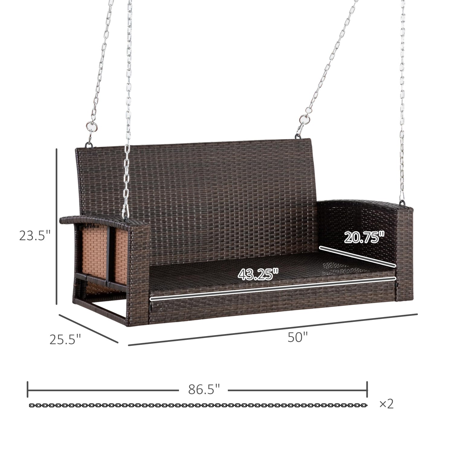 Outsunny 2 Person Wicker Hanging Swing Bench, Front Porch Swing Outdoor Chair with Cushions 550 lbs. Weight Capacity for Backyard, Garden, Orange
