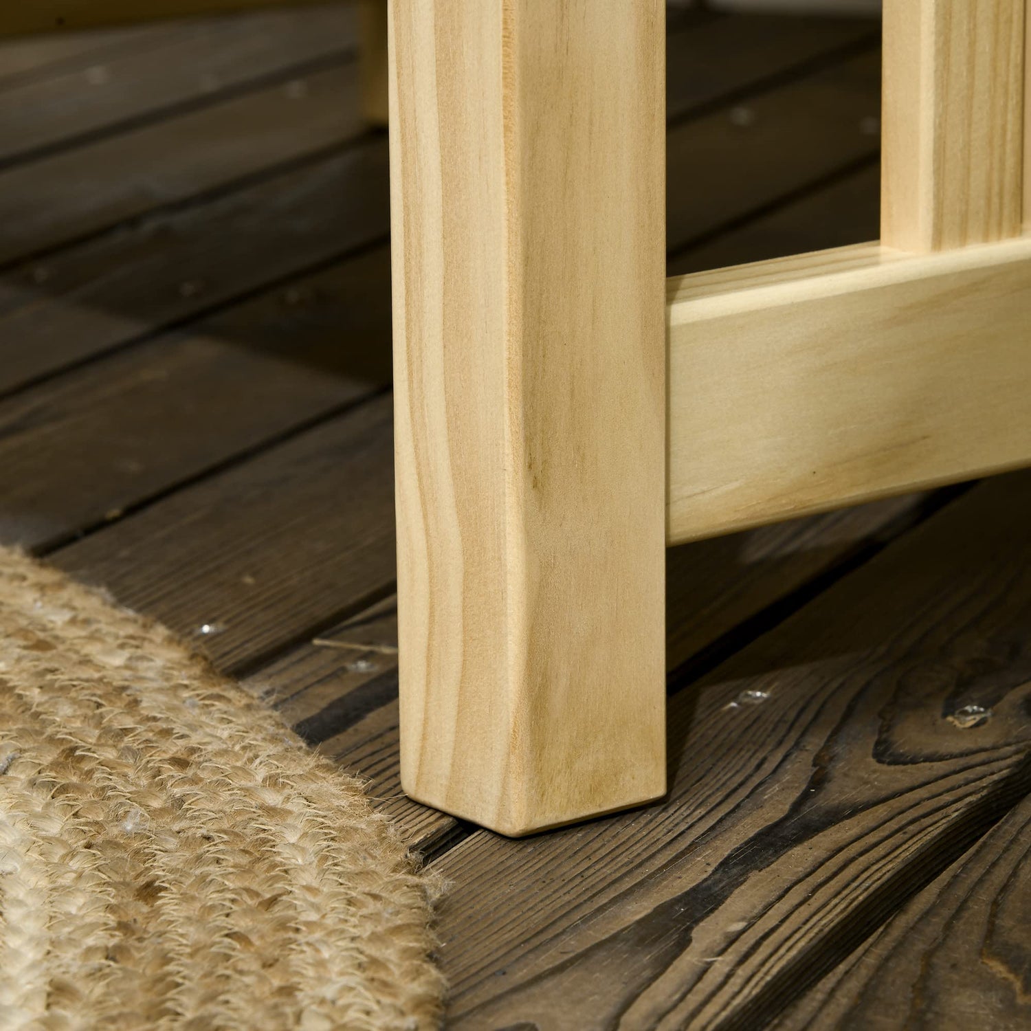 - Elegant Wood: Our wood patio furniture is crafted of solid pinewood and covered over with a protective coating. This coating both helps the frames endure outdoor conditions, and helps bring out the natural beauty of the wood grain.