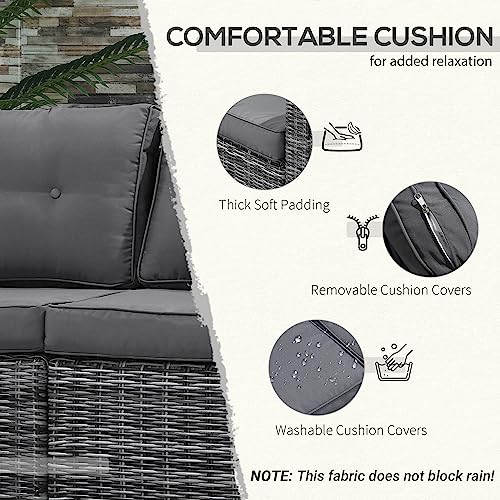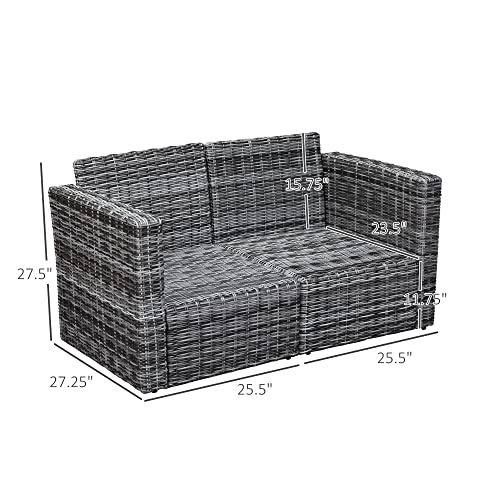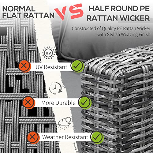 Outsunny 2 Piece Patio Wicker Corner Sofa Set, Outdoor PE Rattan Furniture, with Curved Armrests and Padded Cushions for Balcony, Garden, or Lawn, Lawn, Grey