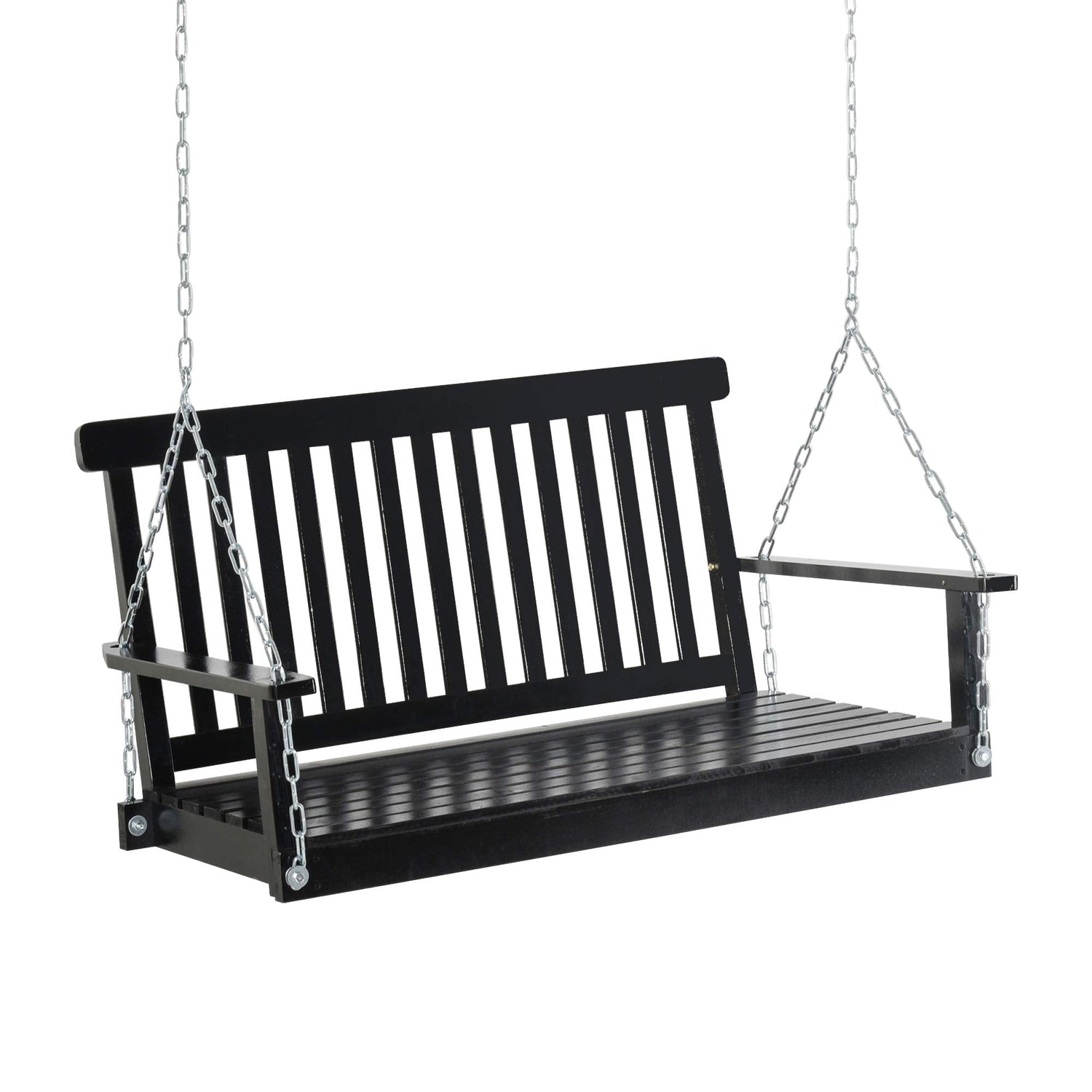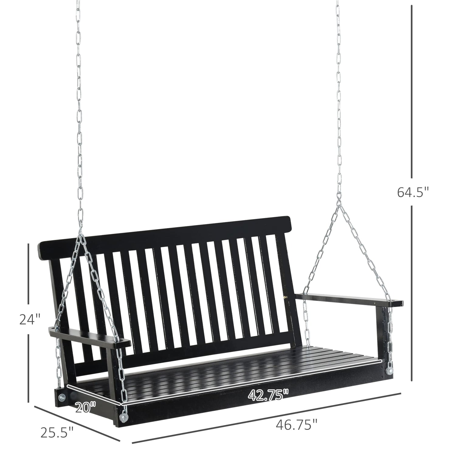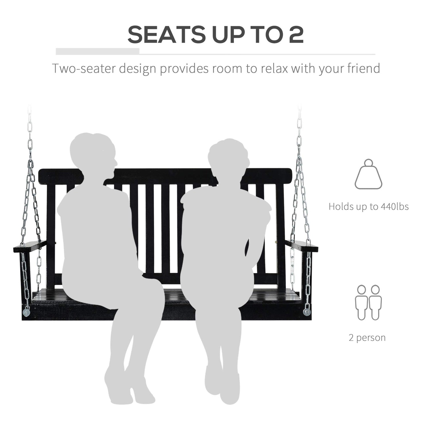 Outsunny 2-Seater Hanging Porch Swing Outdoor Patio Swing Chair Seat with Slatted Build and Chains, 440lbs Weight Capacity, Black