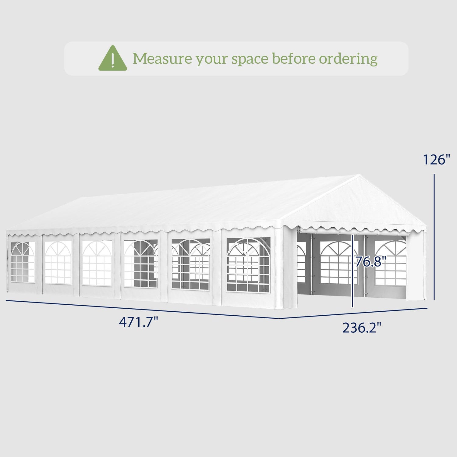 Outsunny 20' x 40' Heavy Duty Party Tent, Galvanized Outdoor Canopy Tent Large Event Shelter with Removable Sidewalls, 12 Windows and 2 Doors, Tents for Parties, Wedding, Events, BBQ Grill, White