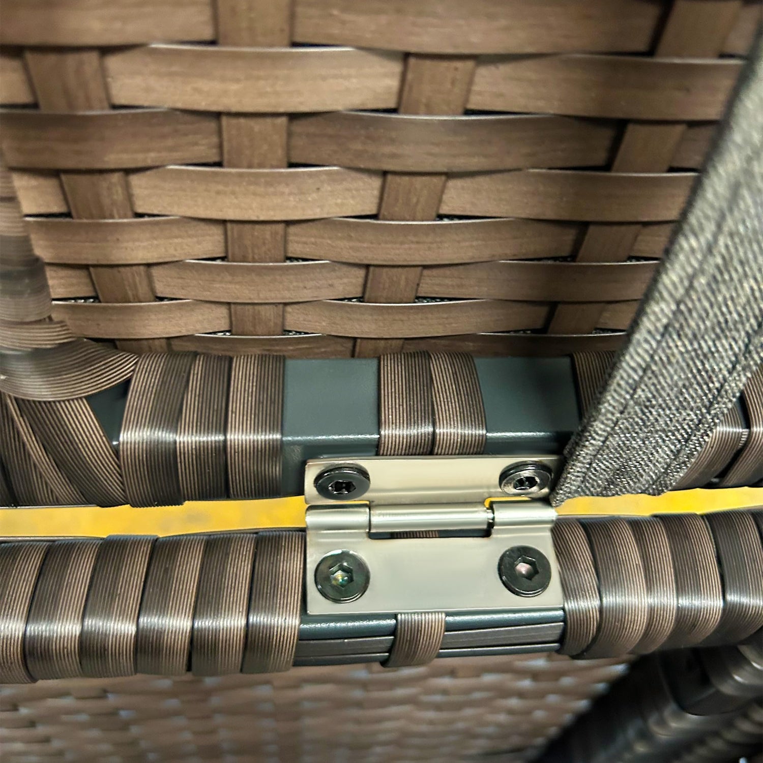 - Soft Padded Cushion: A long patio storage bench with plenty of room, this wicker two-seater features soft, padded seat cushions. When your PE rattan bench needs to be cleaned, remove the cushion cover and wipe it with a cloth from both sides.