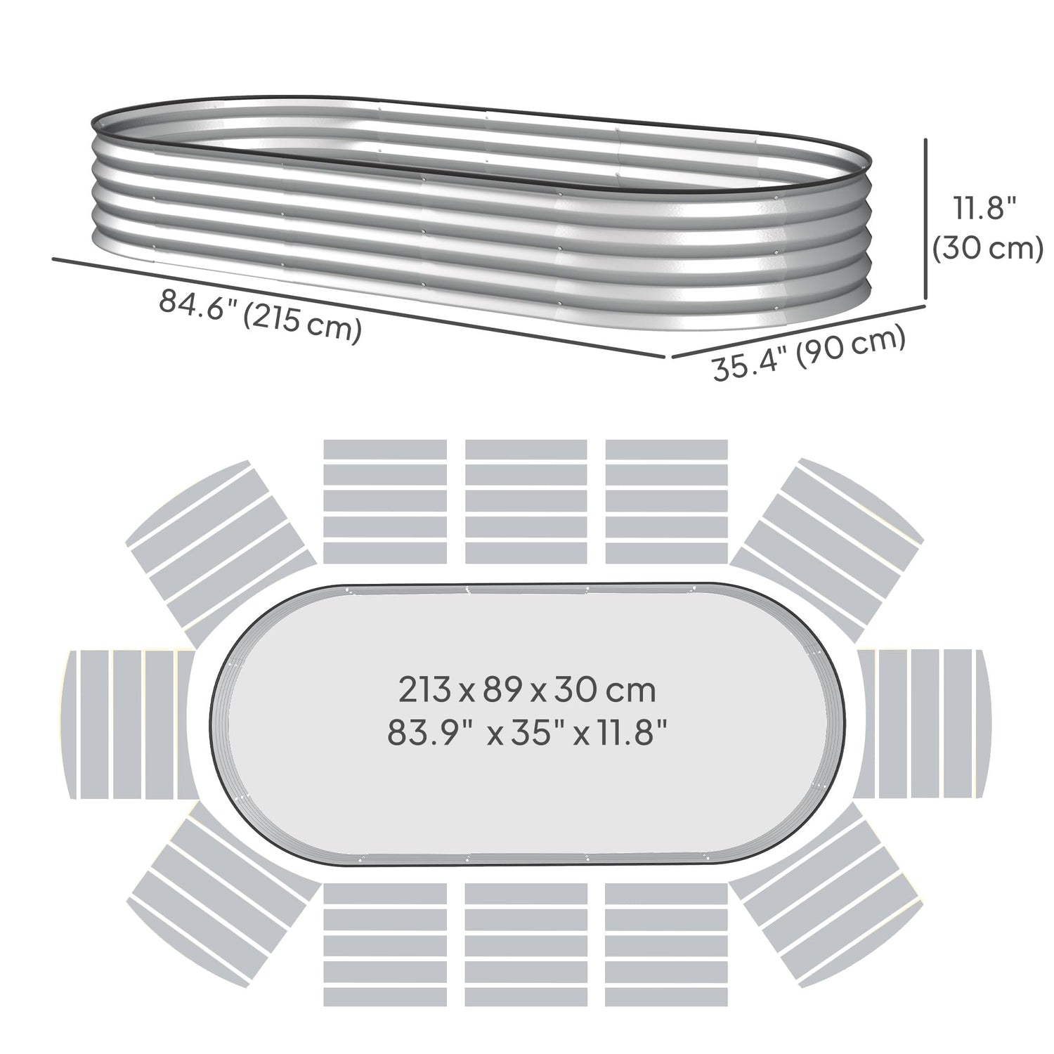 Outsunny 2PCS Galvanized Raised Garden Bed, 7' x 3' x 1' Raised Beds for Gardening with Plant Support Stakes, Rubber Strap Edging and Gloves, Metal Planter Box for Vegetables, Flowers, Silver