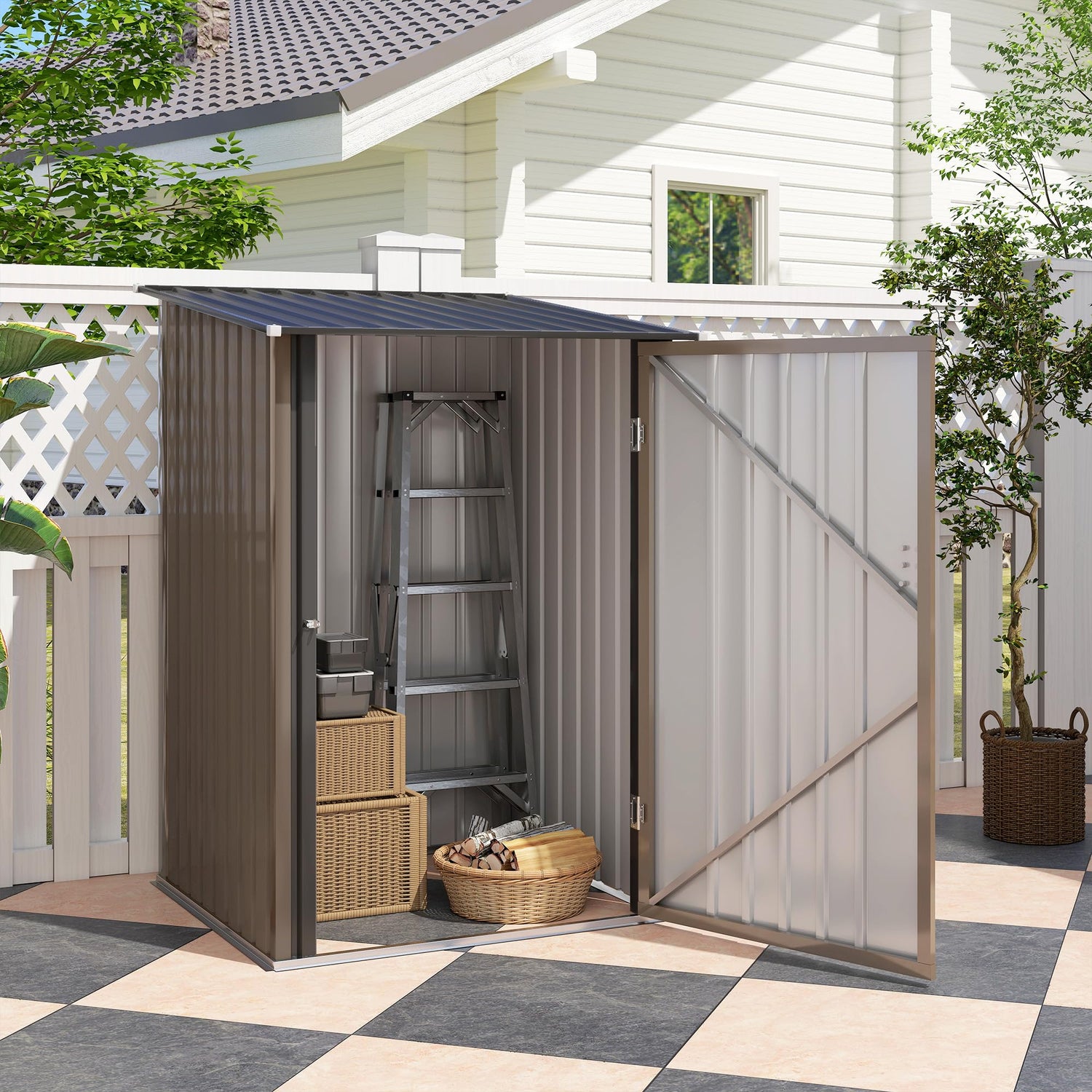 Outsunny 3.3' x 3.4' Outdoor Storage Shed, Metal Garden Tool House with Sloping Roof and Lockable Door for Backyard, Bike, Patio, Garage, Lawn, Brown