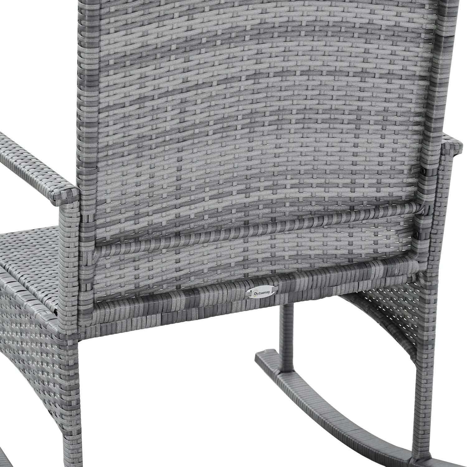- Wicker Rocking Chair Set: Bring the perks of the indoors outside. This set features two PE wicker rocking chairs with wide seating and ample armrests. The seat comes cushioned for comfort. Nap without worry, the rocker's base features an anti-slip grip to stay stable and stop surfaces from being scratched.