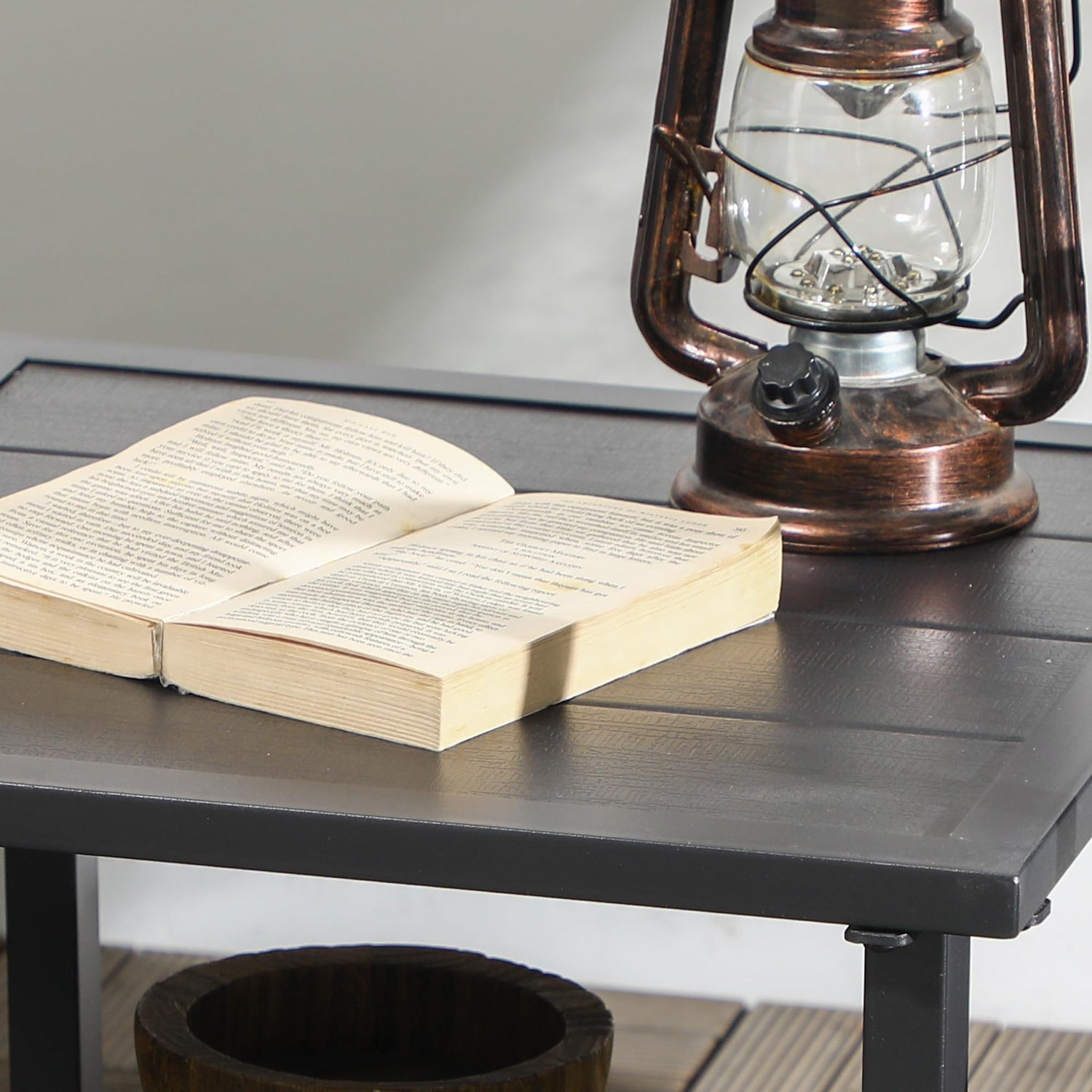 - Two-Tier Matching Table: Our outdoor rocking chair set includes a two-tier coffee table that's great for sharing drinks. The second tier offers a place for outdoor storage and is excellent for potted plants.