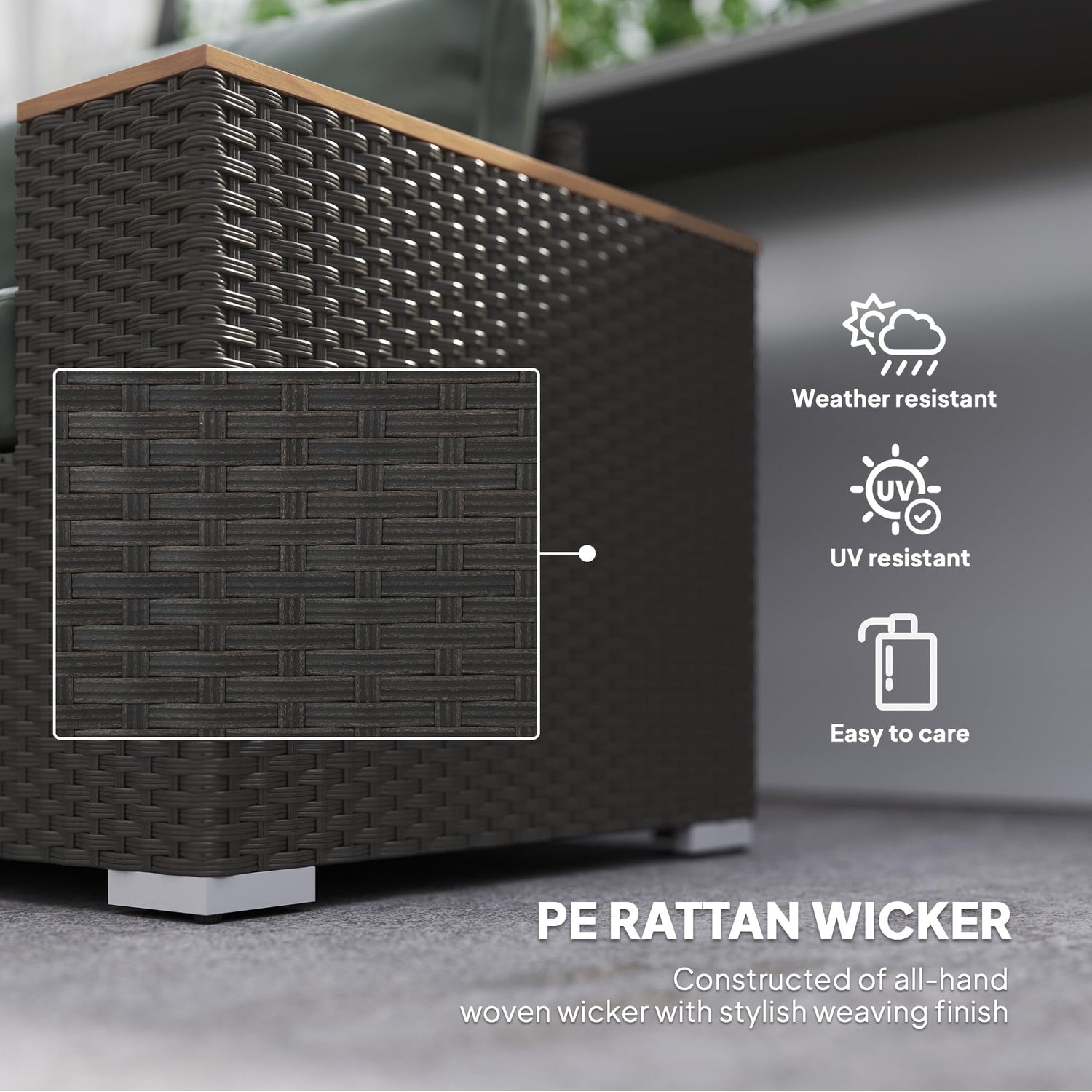 Outsunny 3-Seat Outdoor Patio Sofa with Cushions, PE Rattan Wicker Sofa with Wood Grain Wide Armrests, Outdoor Wicker Couch for Porch, Garden, Sunroom, Poolside, Dark Gray