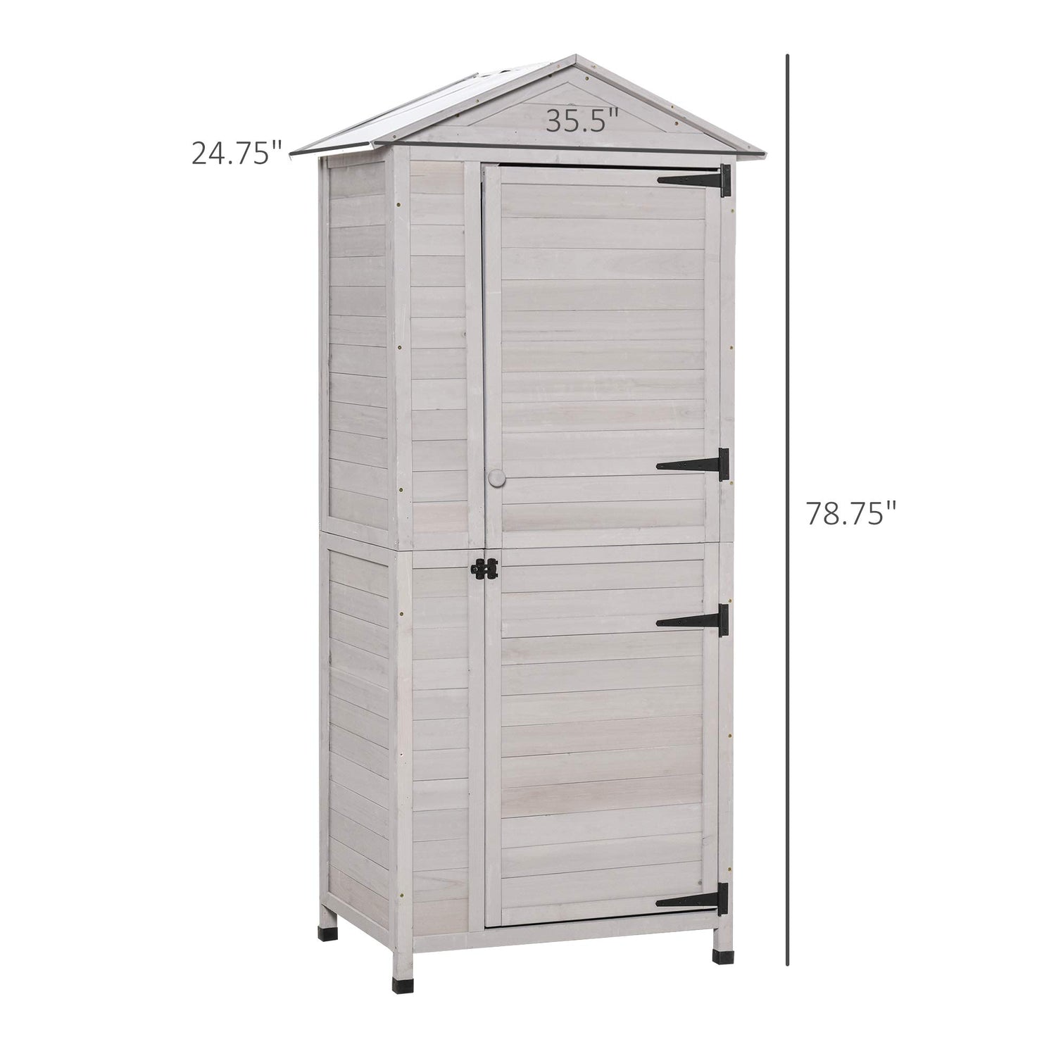 - For All Your Tools: The tool shed measures 35.5"L x 24.75"W x 78.75"H, ensuring that you have a garden's-worth room for your all tools in this shed.