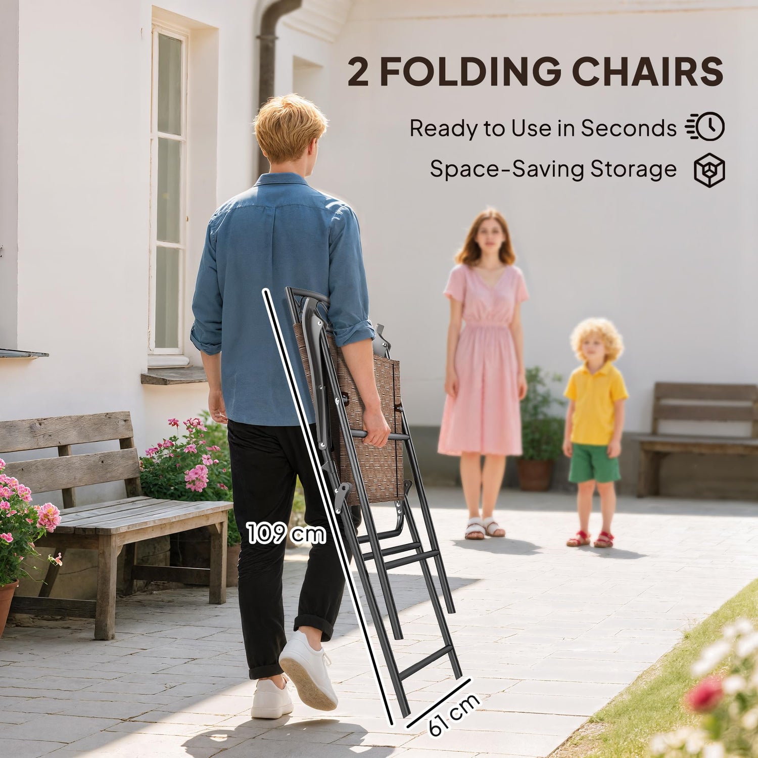 - Folding Chairs: This outdoor dining set features two foldable armchairs that you can set up, tear down, move, and store fast. Their curved armrests keep you comfy while basking in the summer breeze. Easy use for BBQs, pool parties, ready for the summer.