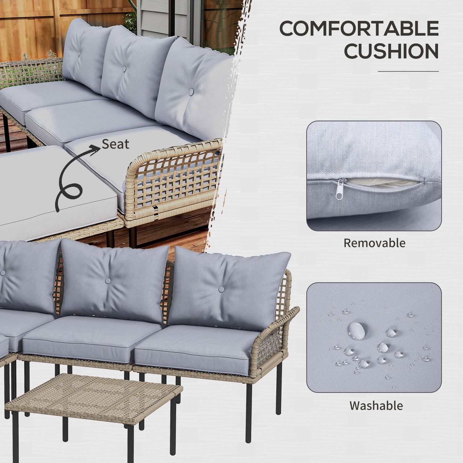 Brighten your backyard and make the exterior of your home just as inviting as the inside. This Outsunny rattan patio furniture set is made of strong steel frame with all-weather PE rattan wicker. Excellent seating choice for your terrace, patio, porch, poolside, or garden area. Decorative and functional, the patio sectional furniture set creates an inviting setting that you and your family will want to use all throughout the year.