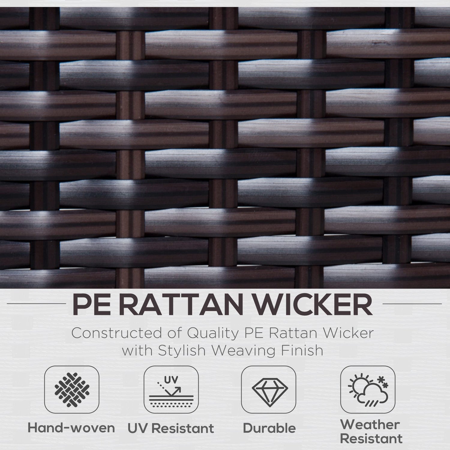 - Outdoor Ready: Our patio furniture set is handwoven with PE rattan, giving the look of traditional wicker with superior resistance to UV and water. Reinforced with a galvanized steel frame, it offers a heavy-duty weight capacity.