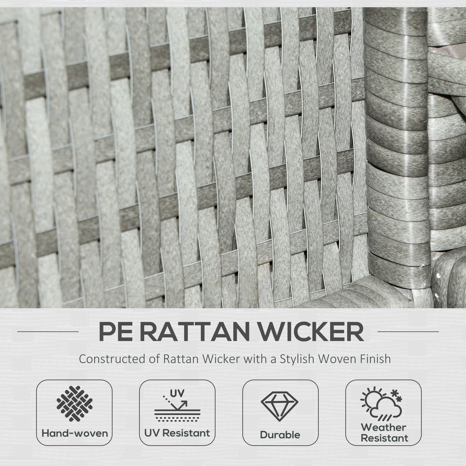 Our five-piece rattan patio sectional set brings the comforts of the living room to the backyard. Everything is there: a couch composed of two corners and a center section, an ottoman footrest, and a tempered glass table. Enjoy an outdoor couch with perks like throw pillows, thickly padded cushions, and a place to put your feet up. Offering a home base for outdoor activities, it easily becomes the icing on top of pool parties, picnics, and backyard barbeques. Get out, get comfy, get Outsunny.
