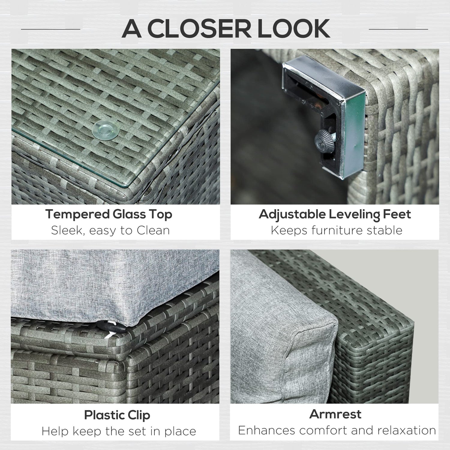 Outsunny 5-Piece Patio Furniture Set with Cushions, Outdoor PE Rattan Wicker Sofa Set, Sectional Furniture with Pillows, Glass Coffee Table for Garden, Backyard, Mixed Gray