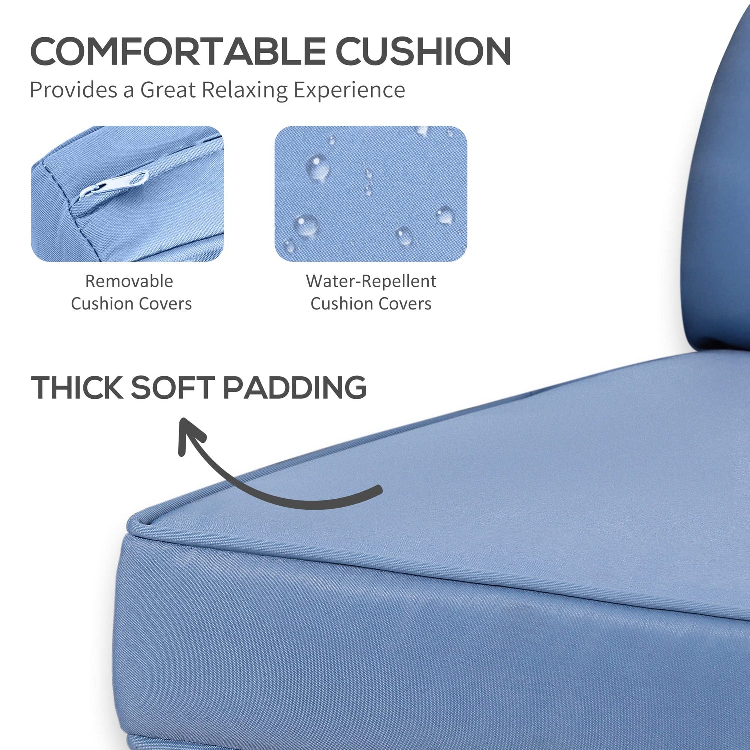 Outsunny 5 Pieces Rattan Wicker Lounge Chair Outdoor Patio Conversation Set with 2 Cushioned Chairs, 2 Ottomans and Tempered Glass Top Coffee Table, Blue