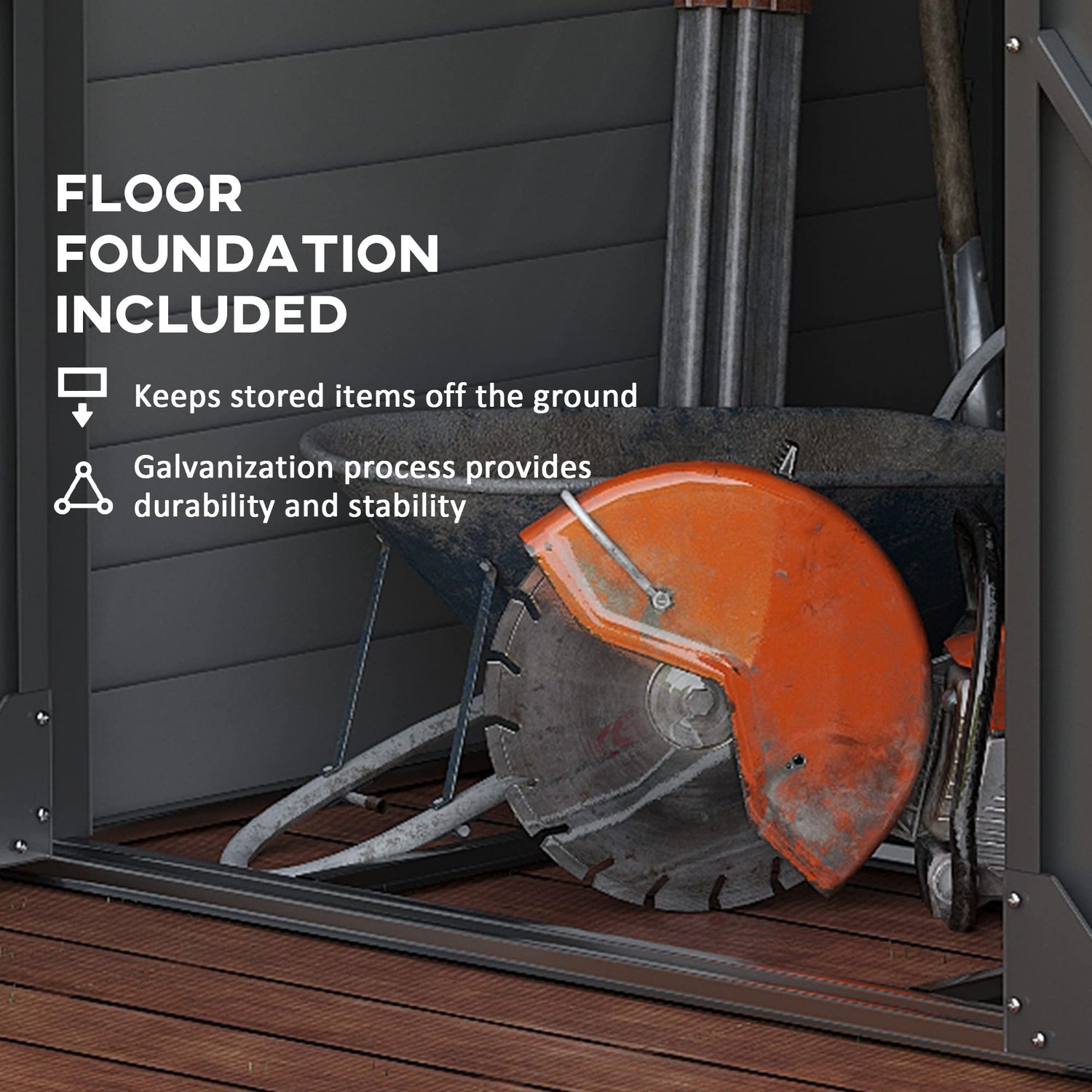 - Store Safely with Steel: Made with water-resistant galvanized steel that stands up to wind, rain, snow, UV, and even fire, our storage building offers heavy-duty protection. It's equipped with an internal foundation kit, enhancing stability, sealing the space from below, and keeping the inside clean.