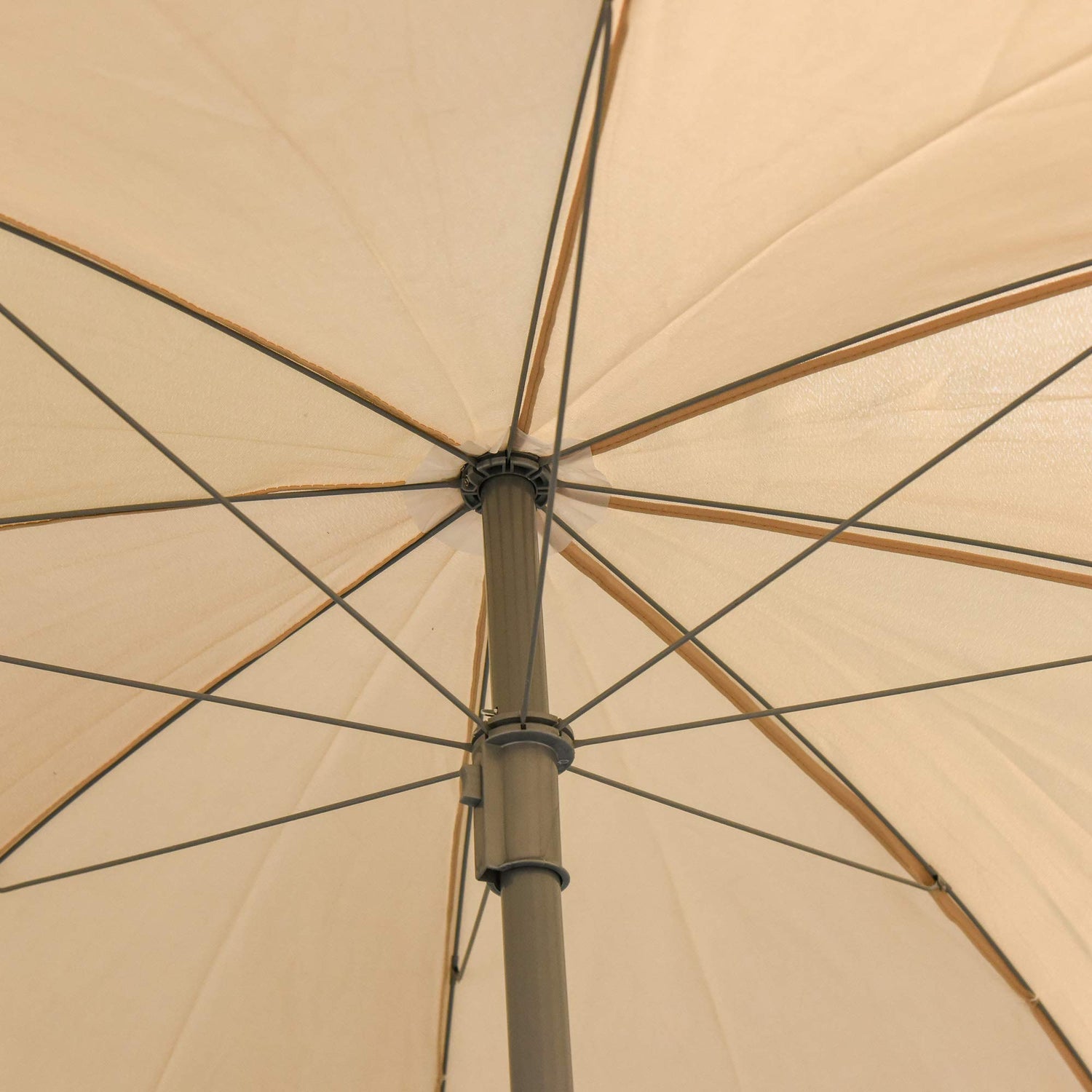 Outsunny 6 Piece Patio Dining Set for 4 with Umbrella, Outdoor Table and Chairs with 4 Folding Dining Chairs & Round Glass Table for Garden, Backyard and Poolside, Beige