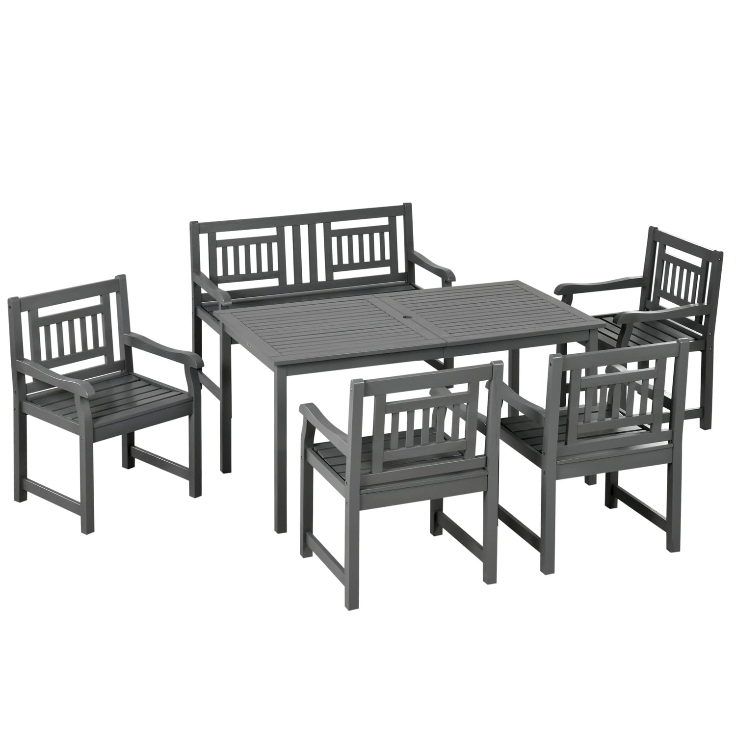 Outsunny 6 Piece Patio Dining Set, Outdoor Poplar Wood Furniture Set, Umbrella Hole Table and Chairs with Bench for Porch, Backyard, Balcony, Outside Garden, Dark Gray