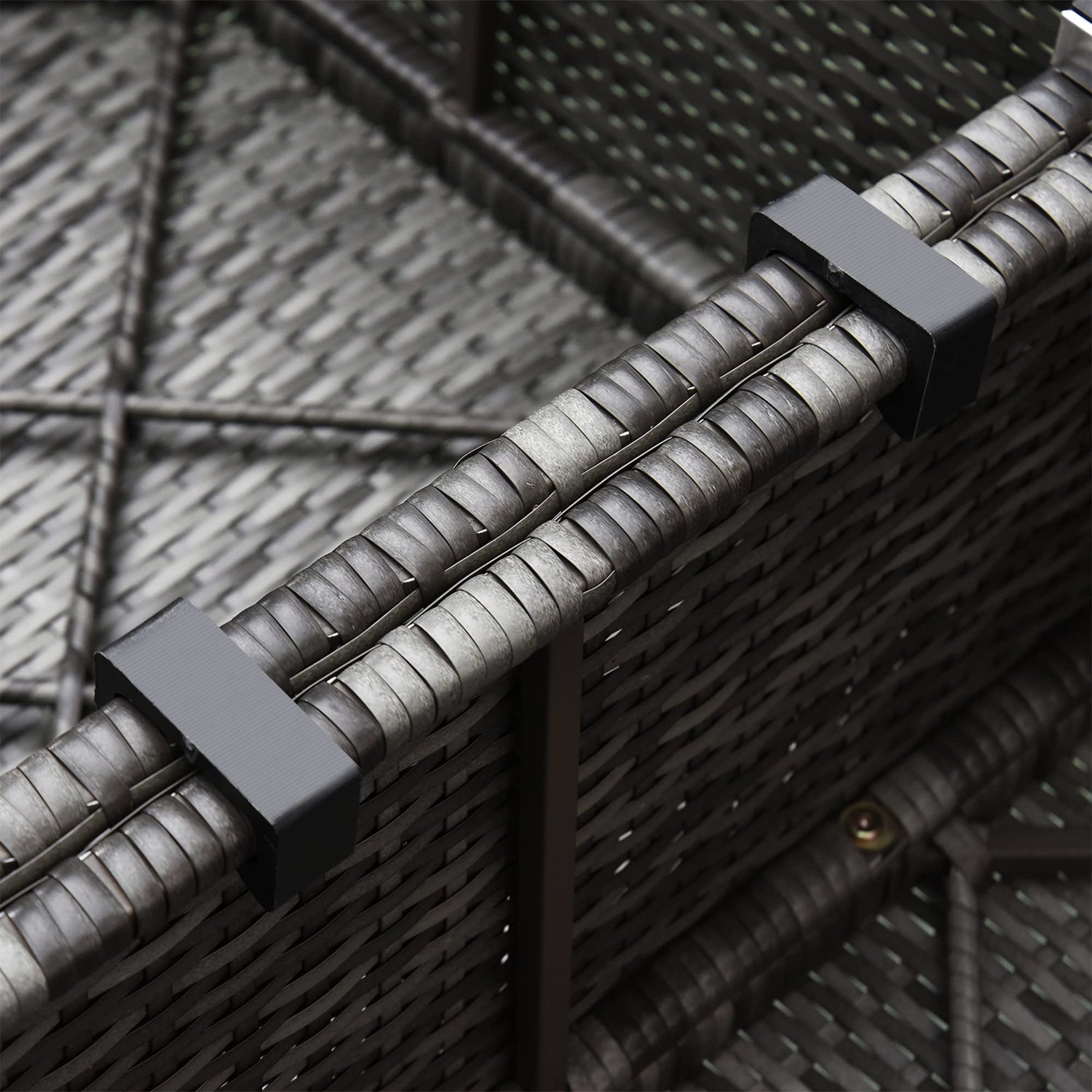 - Outdoor Sofa Set: Our outdoor sectional sofa set is handwoven with PE rattan, a material that has all the tropical style of classic wicker, with better resistance water and weathering. Reinforcing each seat is a strong galvanized steel frame, that not only withstands water too, but it also helps maintain an extra high 395 lbs. weight capacity.