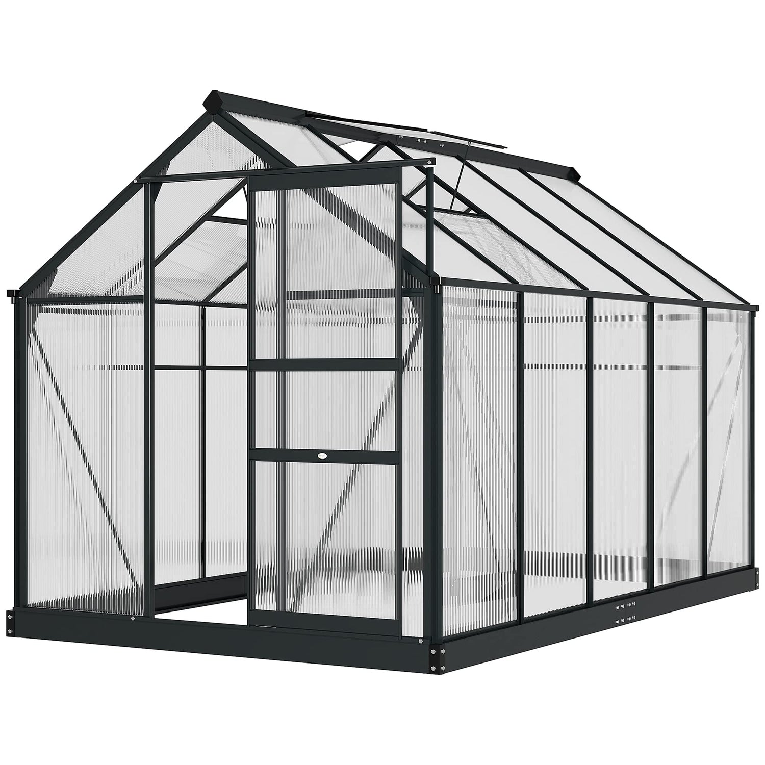 Outsunny 6' x 10' x 6.5' Polycarbonate Greenhouse, Heavy Duty Outdoor Aluminum Walk-in Green House Kit with Rain Gutter, Vent and Door for Backyard Garden, Gray