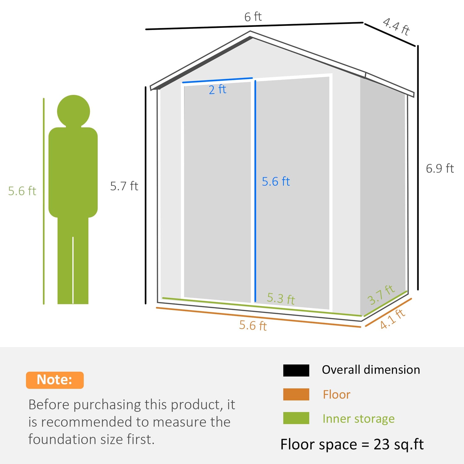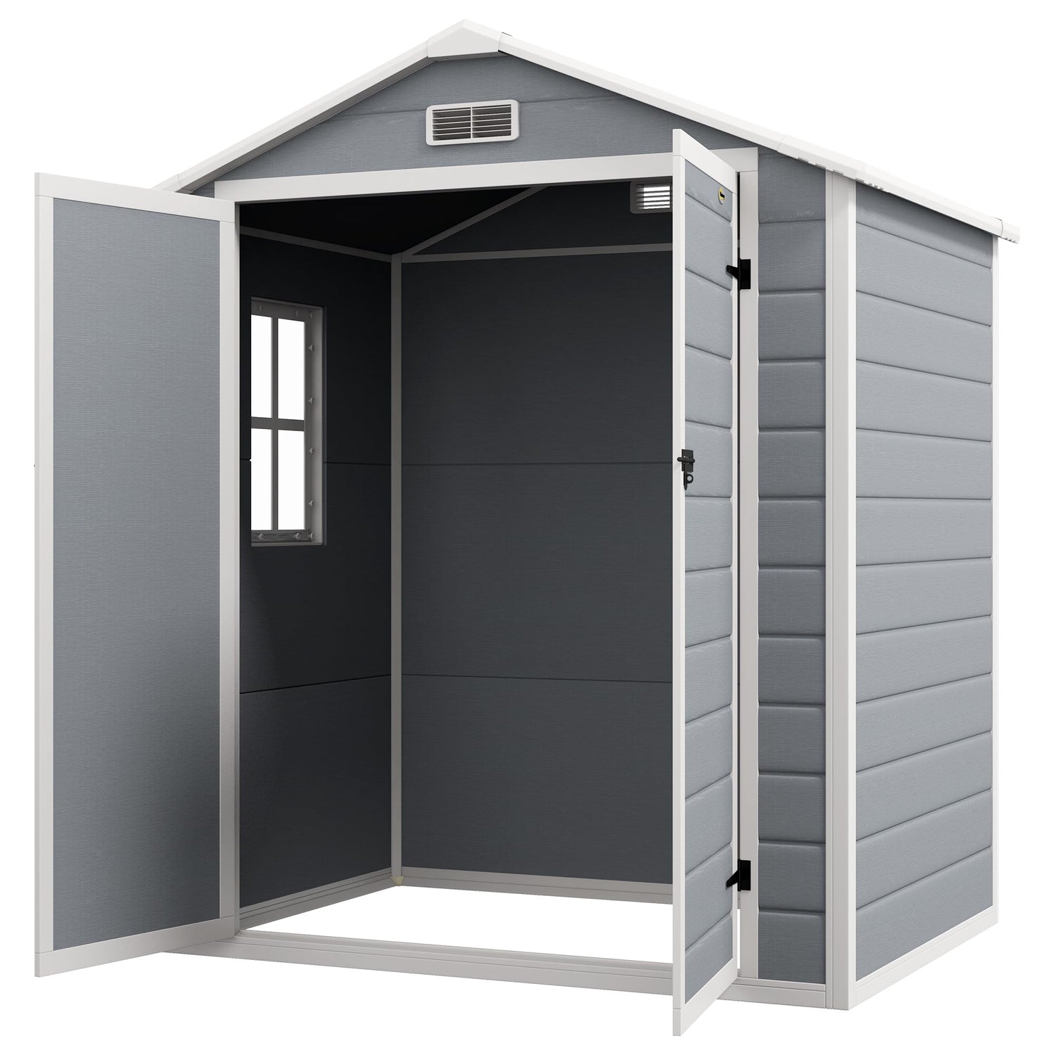Outsunny 6' x 4.5' Outdoor Storage Shed, Plastic Shed with Vent, Window and Double Lockable Doors, Utility Resin Shed for Patio, Backyard, Lawn, Garage, Gray