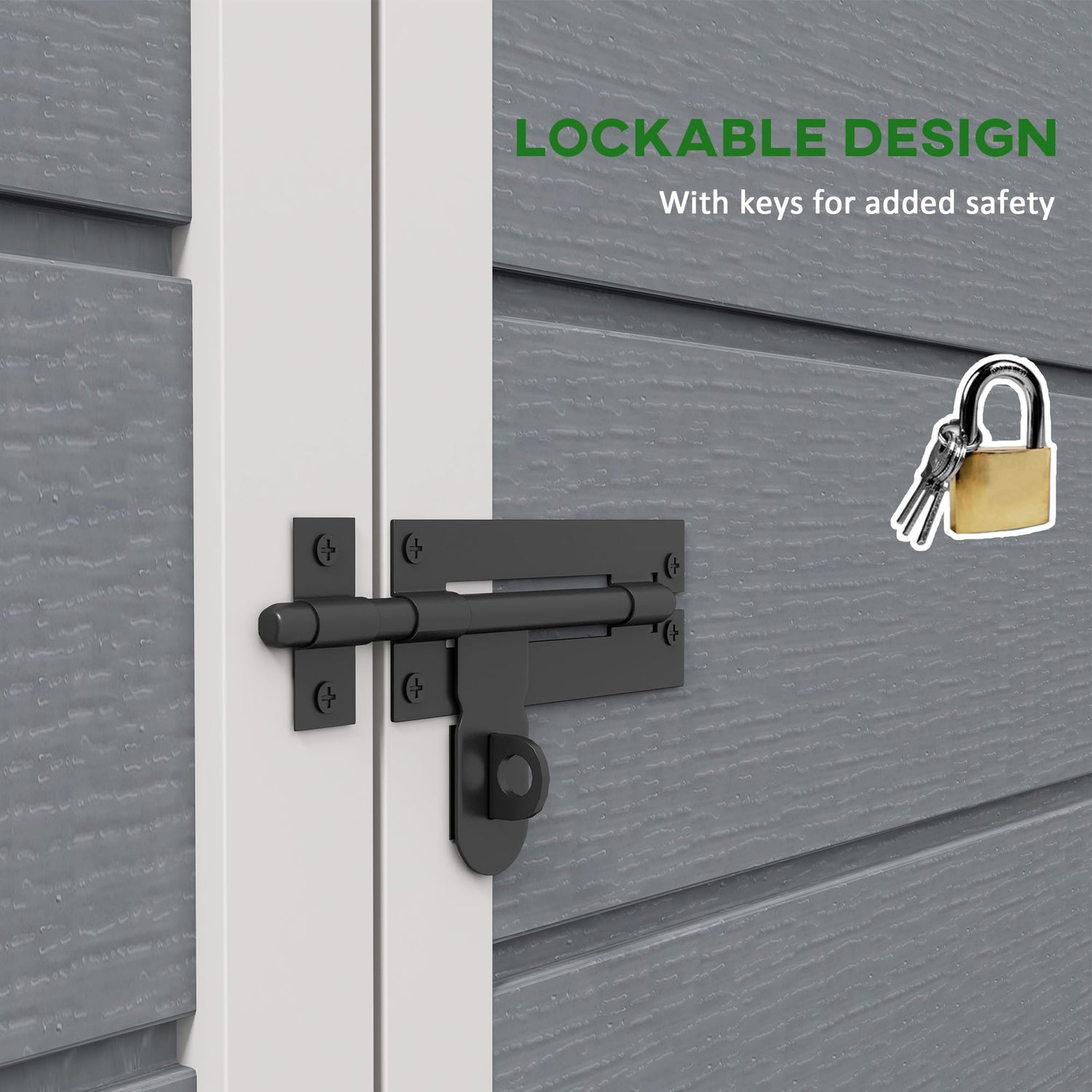 - Secure Storage Solution: Keep your valuable equipment safe with our lockable storage house, featuring latch doors that secure with a lock. Great for storing power tools, bicycles, and motorcycles, it ensures safety against theft (lock and keys provided).