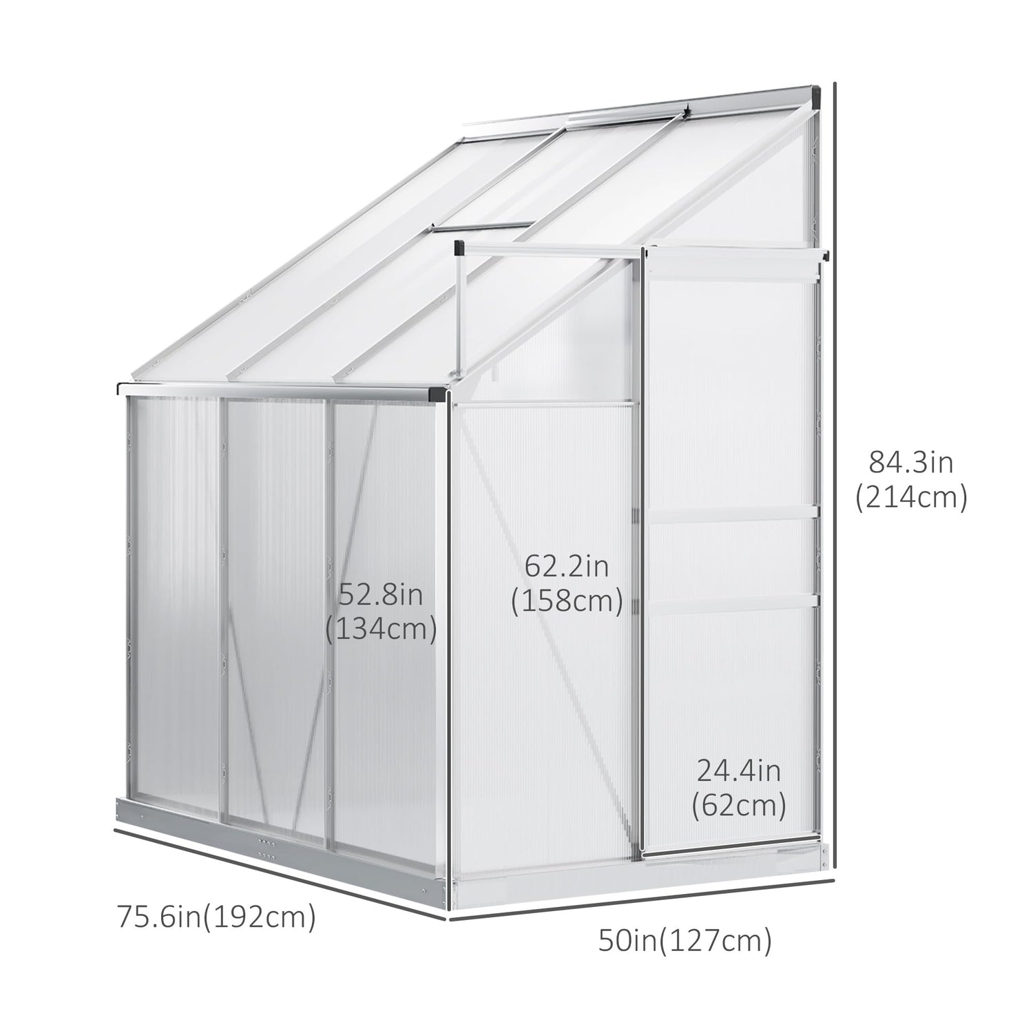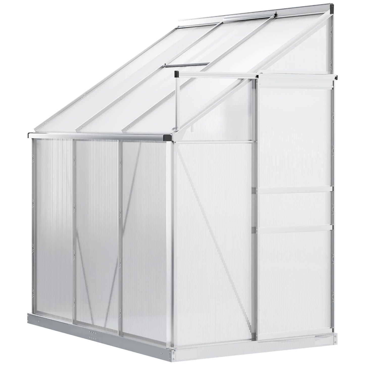 Outsunny 6' x 4' Aluminum Lean-to Greenhouse Polycarbonate Walk-in Garden Greenhouse with Adjustable Roof Vent, Rain Gutter and Sliding Door for Winter, Clear
