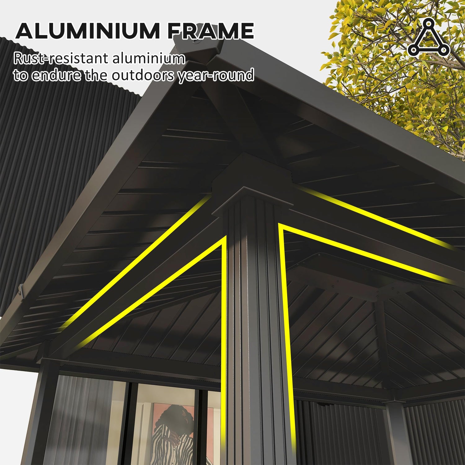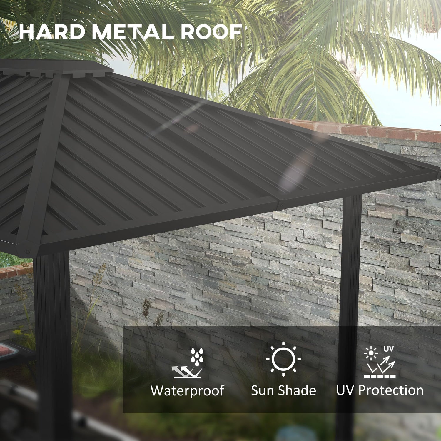 Outsunny 6' x 8' Hardtop Grill Gazebo, BBQ Gazebo with Metal Roof, Aluminum Frame and 2 Side Shelves, for Patio, Lawn, Garden